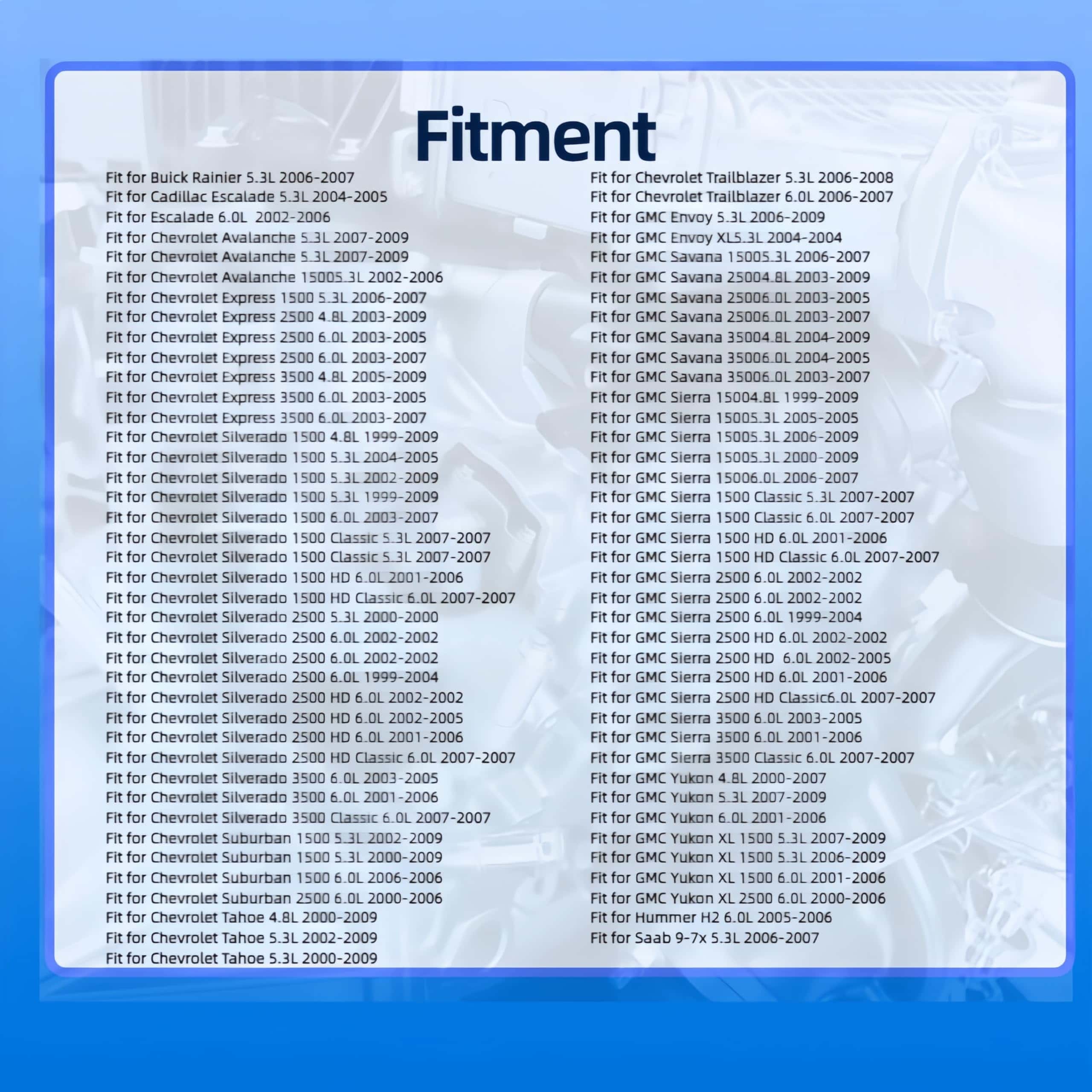 Juego de Juntas de Colector de Admisión YIDEZU para Chevrolet Avalanche Express Buick Yukon GMC Saab 4.8L 5.3L 6.0L en V8 MIS16340. Este juego de juntas está diseñado para adaptarse a superficies de sellado imperfectas, ayudando a sellarlas de manera efectiva. El anillo de sellado de silicona patentado ayuda a eliminar posibles rutas de fuga, logrando un excelente efecto de sellado. La goma en el marco de acero aluminizado está moldeada para resistir el enfriante y un entorno de trabajo a alta temperatura, lo que le brinda una alta durabilidad y confiabilidad. Asegúrese de verificar el modelo de su vehículo, el modelo de motor y el número de parte que necesita antes de comprar, para garantizar que sea el correcto. Si ha comprado el producto incorrecto, no desgaste el producto dañado ni la etiqueta en el producto para que podamos proporcionar un cambio y devolución incondicional. Número de Parte del Fabricante: MIS16340 MS98016T MS19328 VS50504R MS92211