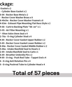 Este Juego de juntas superiores del motor de 57 piezas está diseñado para adaptarse a varios modelos de Harley-Davidson Sportster 1200 y XLH1200. Proporciona una protección mejorada contra escombros y condiciones climáticas, lo que ayuda a prolongar la vida de los rodamientos de ruedas y conjuntos de puntal en tu Harley-Davidson. El paquete incluye un juego completo de juntas. Ofrecemos un excelente servicio postventa, con garantía de 12 meses. Por favor, verifica cuidadosamente si tu modelo de automóvil coincide con el nuestro. Si tienes alguna pregunta, no dudes en contactarnos. Contamos con un servicio al cliente disponible las 24 horas del día.