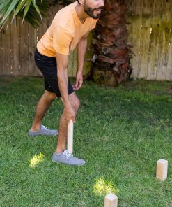 Este set de Kubb está bellamente elaborado con madera maciza, respetuosa con el medio ambiente y absorbente de impactos. Divertido y único, nuestro set de juego Kubb te permitirá mostrar tu estrategia y habilidades. Este juego en equipo puede ser disfrutado por jóvenes y mayores. Lanza las varillas por debajo de forma suave y derriba los bloques de Kubb de tus oponentes. ¡Derriba todos sus bloques, luego el rey y tu equipo será victorioso!