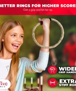 MANGOS DE AGARRE ANCHO – Incluye 6 anillos marrones y blancos de estilo vintage. Hecho con mangos de madera anchos y cuerdas extrafirmes para deslizarse alrededor de los postes con facilidad. ¡Diseñado para lanzamientos más largos, puntería de águila y sonrisas más grandes!.
