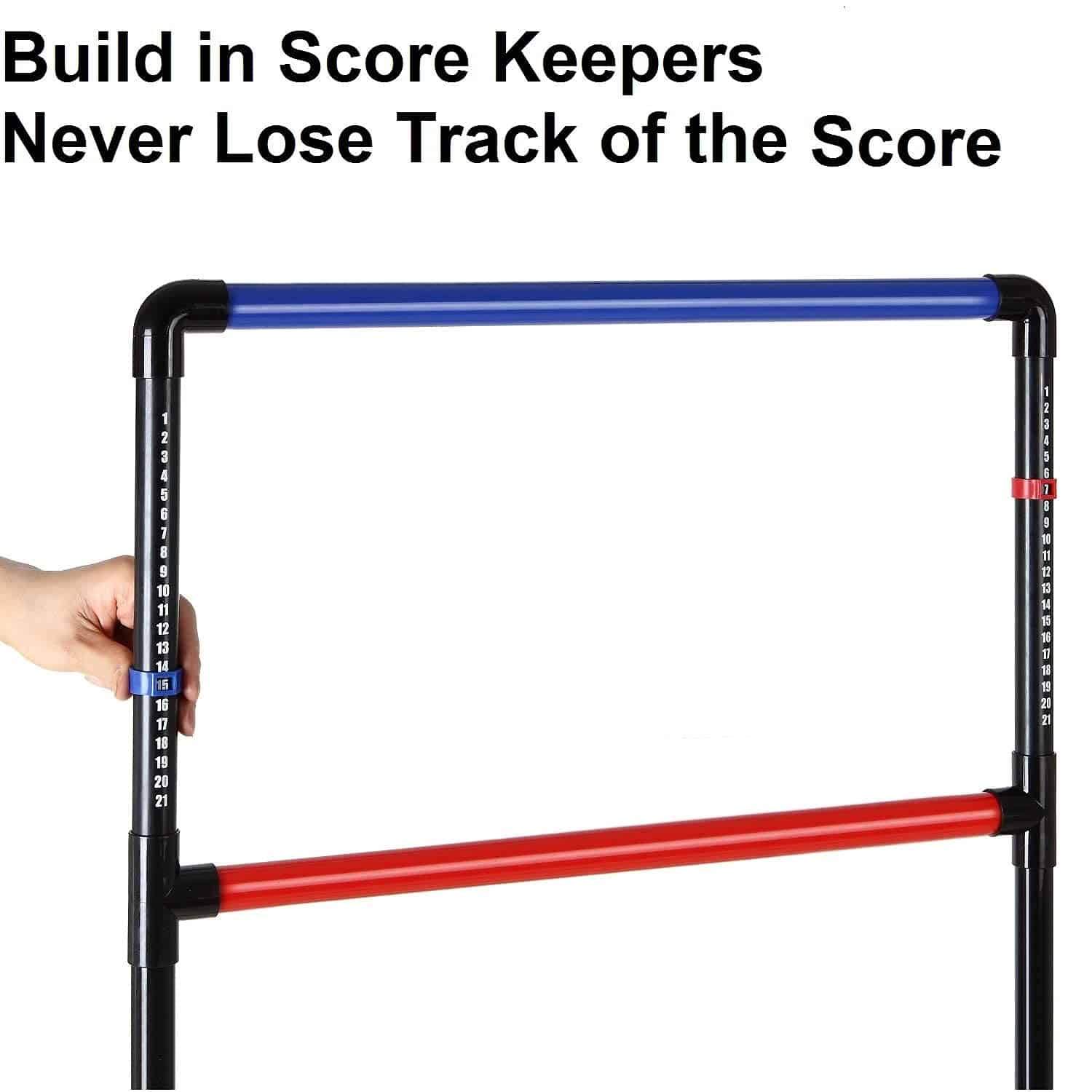1. PERFECTO JUEGO: El juego de lanzamiento de escalera incluye 2 escaleras de plástico resistentes con marcadores de puntuación, 6 bolas con cuerdas lo suficientemente gruesas para evitar enredos (3 Rojas+3 Azules) , un práctico estuche de transporte y reglas. Perfecto para adultos y niños: diferentes puntajes para diferentes peldaños también proporciona una forma divertida para que los niños practiquen la aritmética mental y la coordinación mano-ojo.