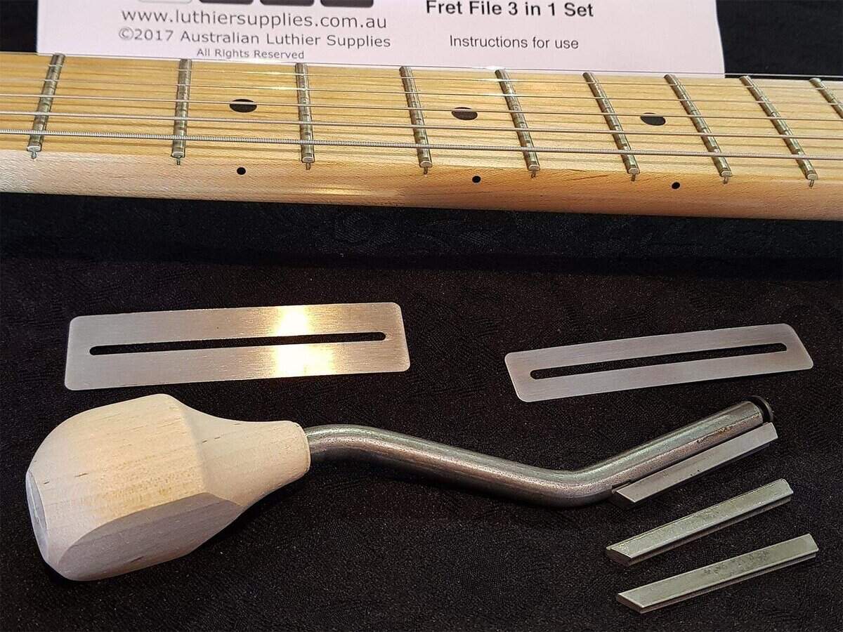 Este juego de lima de trastes ha sido diseñado para ser usado en casi todos los tamaños de alambres de trastes, desde los alambres pequeños utilizados en mandolinas hasta los alambres jumbo utilizados en guitarras eléctricas y bajos.