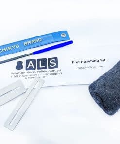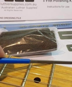Este conjunto incluye una lima especialmente hecha que se utiliza para desbarbar y suavizar los extremos de los trastes, además de una guarda y lana de acero ultrafina para pulir los trastes y eliminar el óxido. El conjunto incluye instrucciones detalladas de uso. Los extremos afilados de los trastes son especialmente problemáticos en guitarras y otros instrumentos de cuerda. Después de que el diapasón se encoja un poco y los trastes sobresalgan por los lados de la tabla. Redondeando las esquinas de los trastes en una guitarra nueva, no se convertirán en una molestia a medida que comienzan a sobresalir por los lados del diapasón con el tiempo. La lima también se puede usar en guitarras antiguas que ya tienen los extremos afilados o sobresalientes de los trastes. La lima tiene dos bordes suaves, que se utilizan contra el diapasón de madera y son suaves para deslizarse de forma segura sobre la madera y no penetrar en el diapasón. Los bordes de corte se utilizan después para quitar las esquinas de los trastes. Con un poco de práctica, un diapasón completo solo lleva cuestión de minutos. El kit de pulido se puede utilizar para eliminar el óxido y la oxidación de los trastes y llevarlos a un acabado espejo.