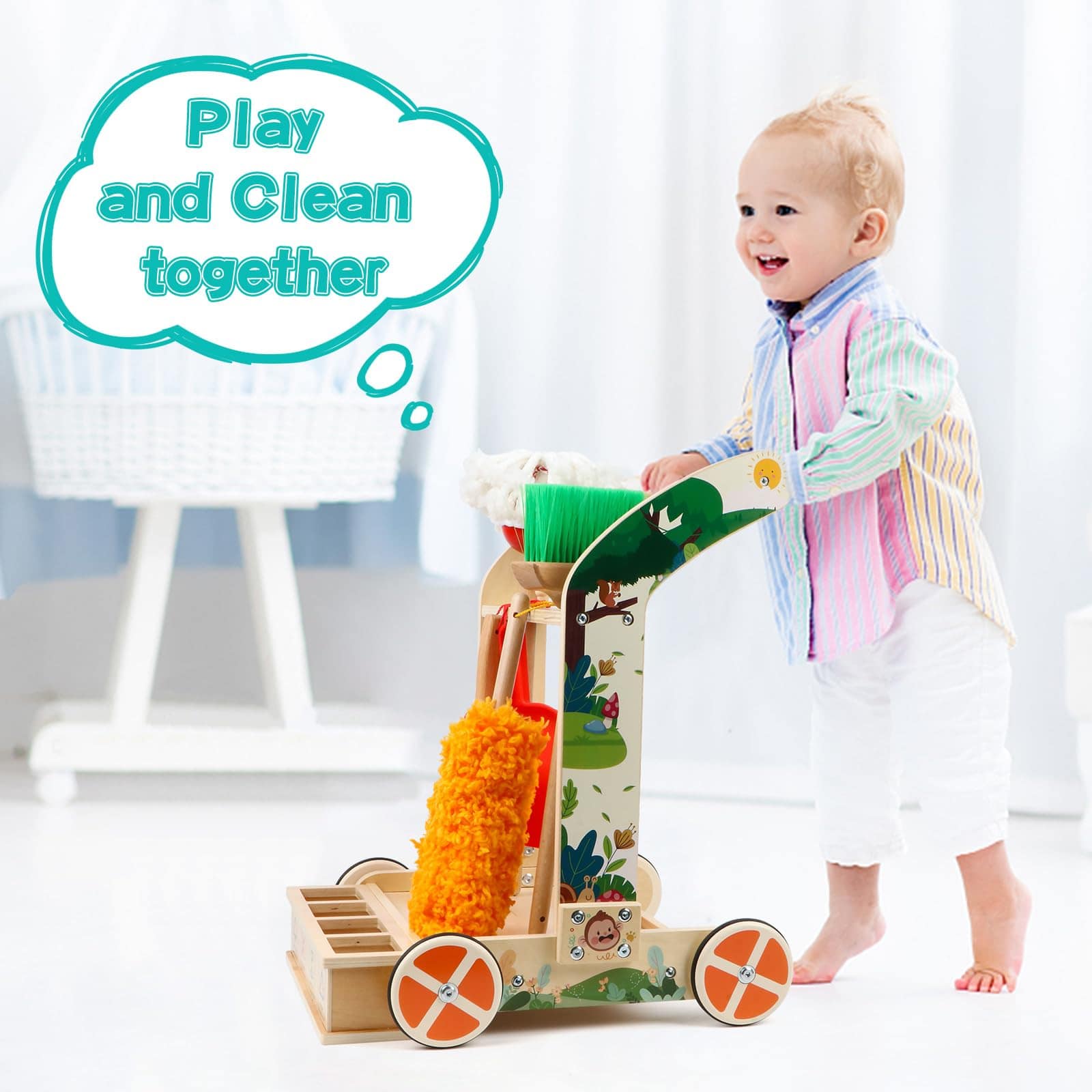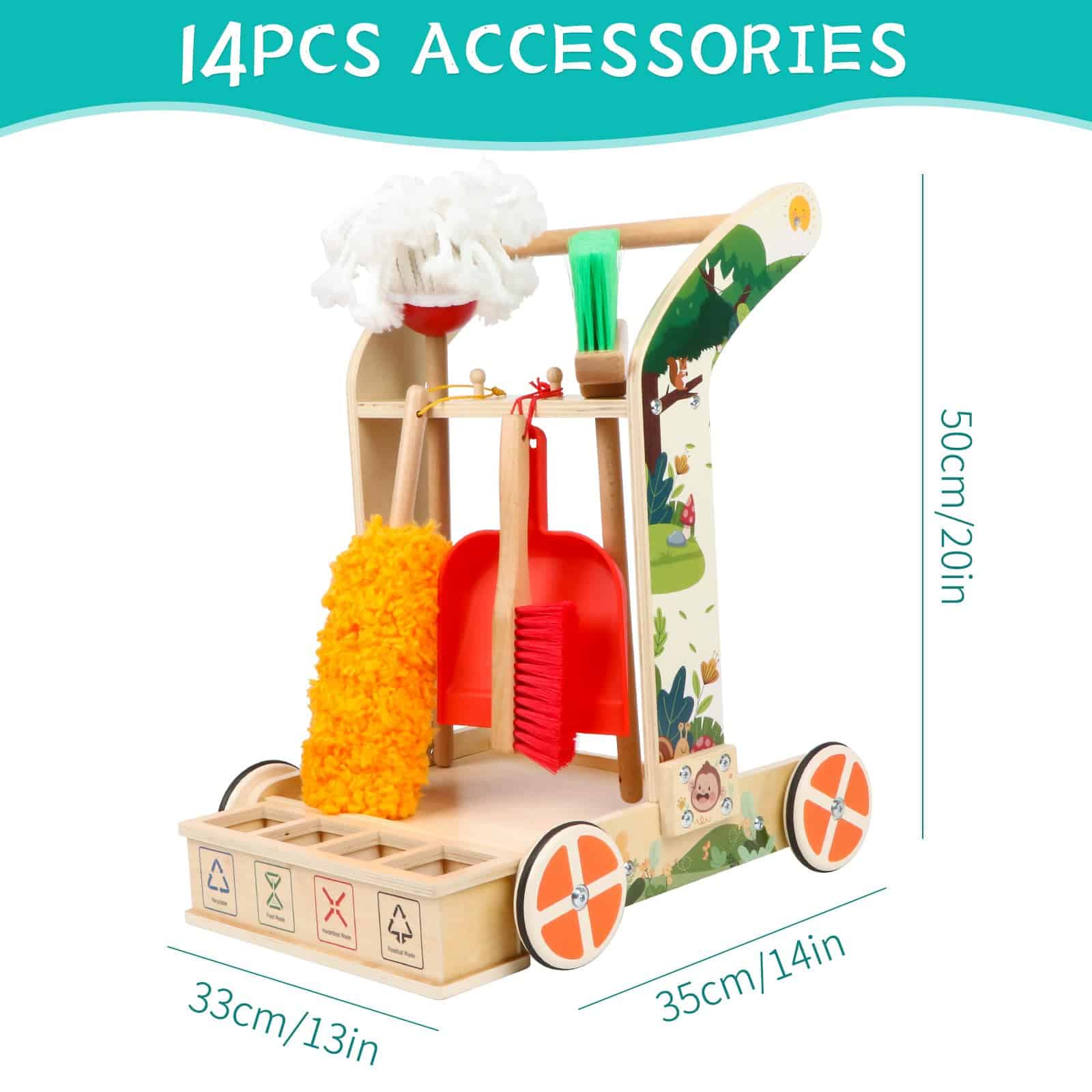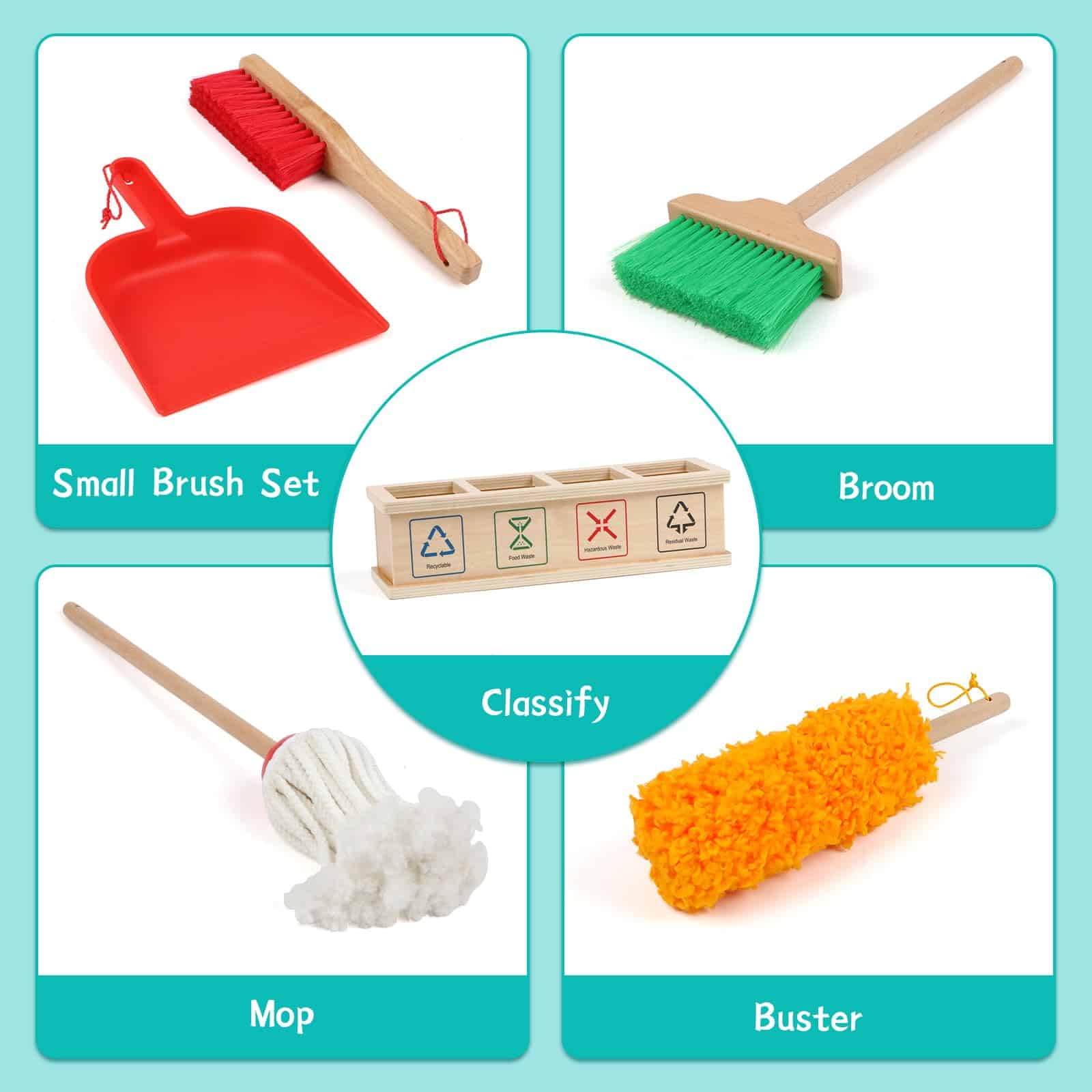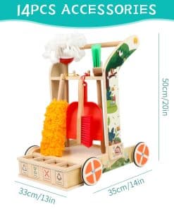 Juego de Limpieza para Niños Montessori de 8 Piezas con Escoba, Trapeador, Recogedor, Plumero, Categorizador de Basura, Juguetes de Madera Desmontables para Jugar a las Tareas Domésticas con Niños. Los niños aprenderán, se divertirán y desarrollarán un sentido de responsabilidad con este juego de limpieza. Incluye herramientas duraderas de madera y un carrito para facilitar el juego de roles. Perfecto para fomentar el interés por limpiar y desarrollar habilidades de limpieza en los niños. ¡Un regalo ideal para el crecimiento y la diversión de los más pequeños!
