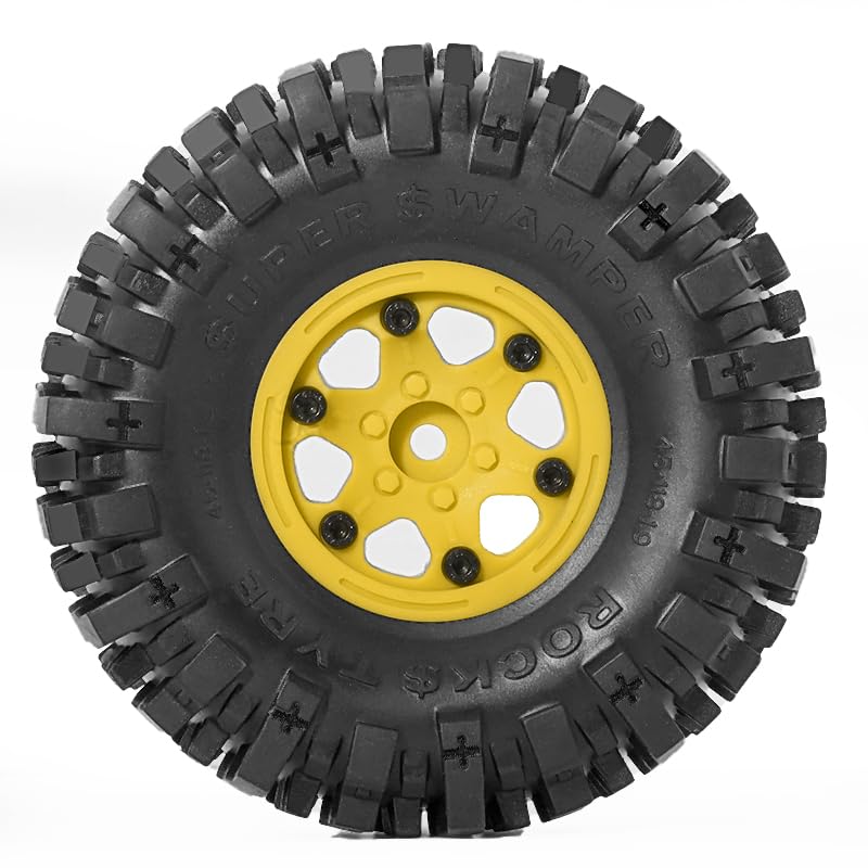 Llantas de 1.9 pulgadas hechas de adhesivo suave, superiores al caucho ordinario, con buena resistencia al calor y al frío, alta resistencia al desgaste y buena durabilidad. Compuestos blandos viscosos proporcionan un agarre máximo en condiciones sueltas, ya sea secas y fértiles, o húmedas y fangosas, y escalada en rocas, diseñadas específicamente para vehículos RC rastreados profesionales.