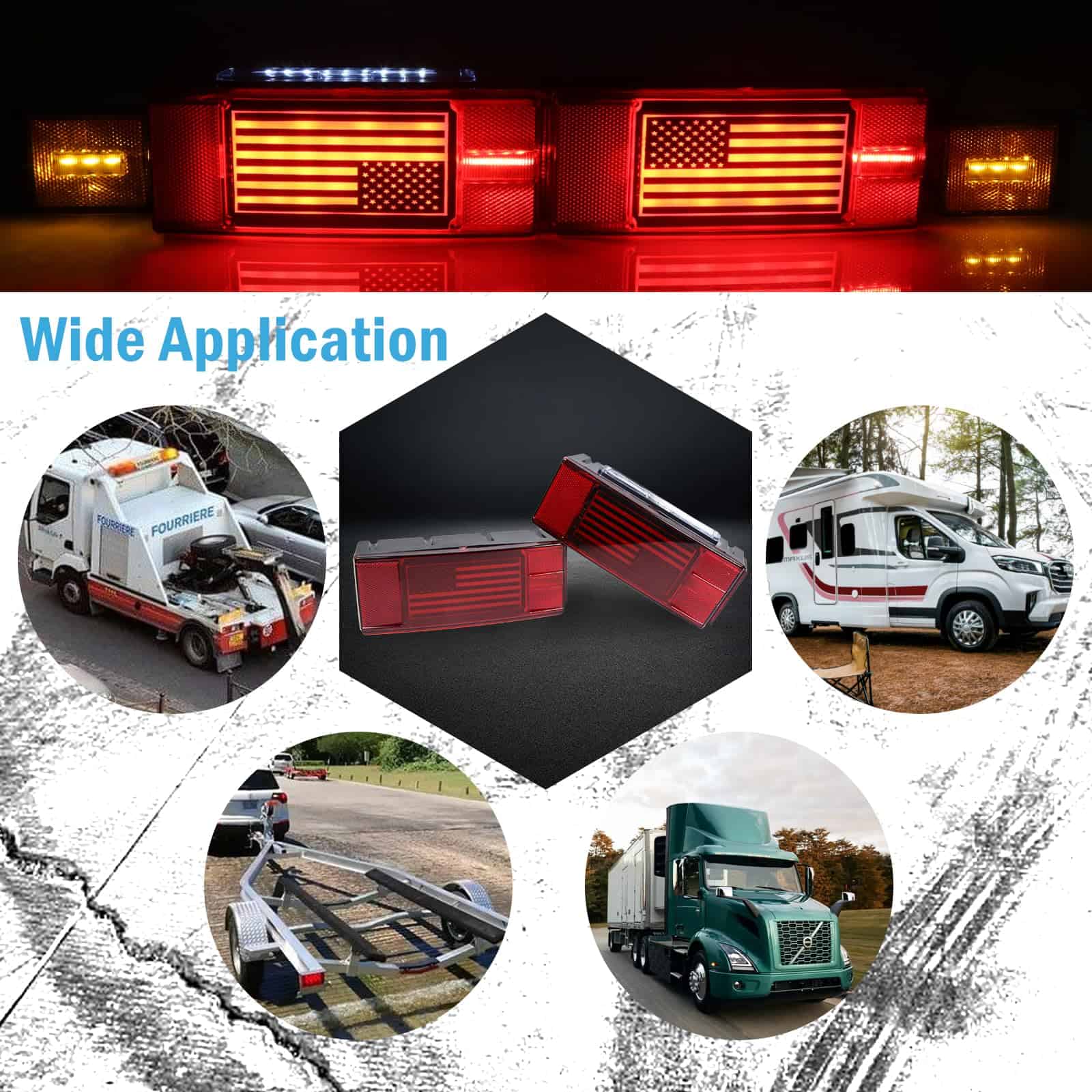 5. Amplias aplicaciones: Luces de remolque de perfil bajo perfectas de repuesto, adecuadas para vehículos de 12V DC de menos de 80 pulgadas de ancho, como remolques de botes, RVs, campers, semirremolques, tractores, camiones, remolques, motonieve, caravanas, camionetas, etc.