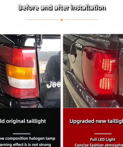 Juego de luces traseras LED completo especialmente diseñado para Jeep Grand Cherokee 1999-2004. Este ensamblaje de luces traseras reemplaza las luces halógenas tradicionales con una fuente de luz LED, proporcionando luces de circulación, intermitentes, freno y reversa LED para una mayor visibilidad y seguridad. El diseño se adapta perfectamente al estilo original del vehículo, mejorando su apariencia estética. El material de fabricación en plástico ABS garantiza resistencia al calor, impactos y estabilidad en diferentes condiciones climáticas. La instalación es sencilla, ya que la alimentación es la misma que la original, sin necesidad de realizar modificaciones. En caso de algún problema con el producto, nuestro equipo de servicio al cliente estará disponible para brindar asistencia rápida y eficiente.