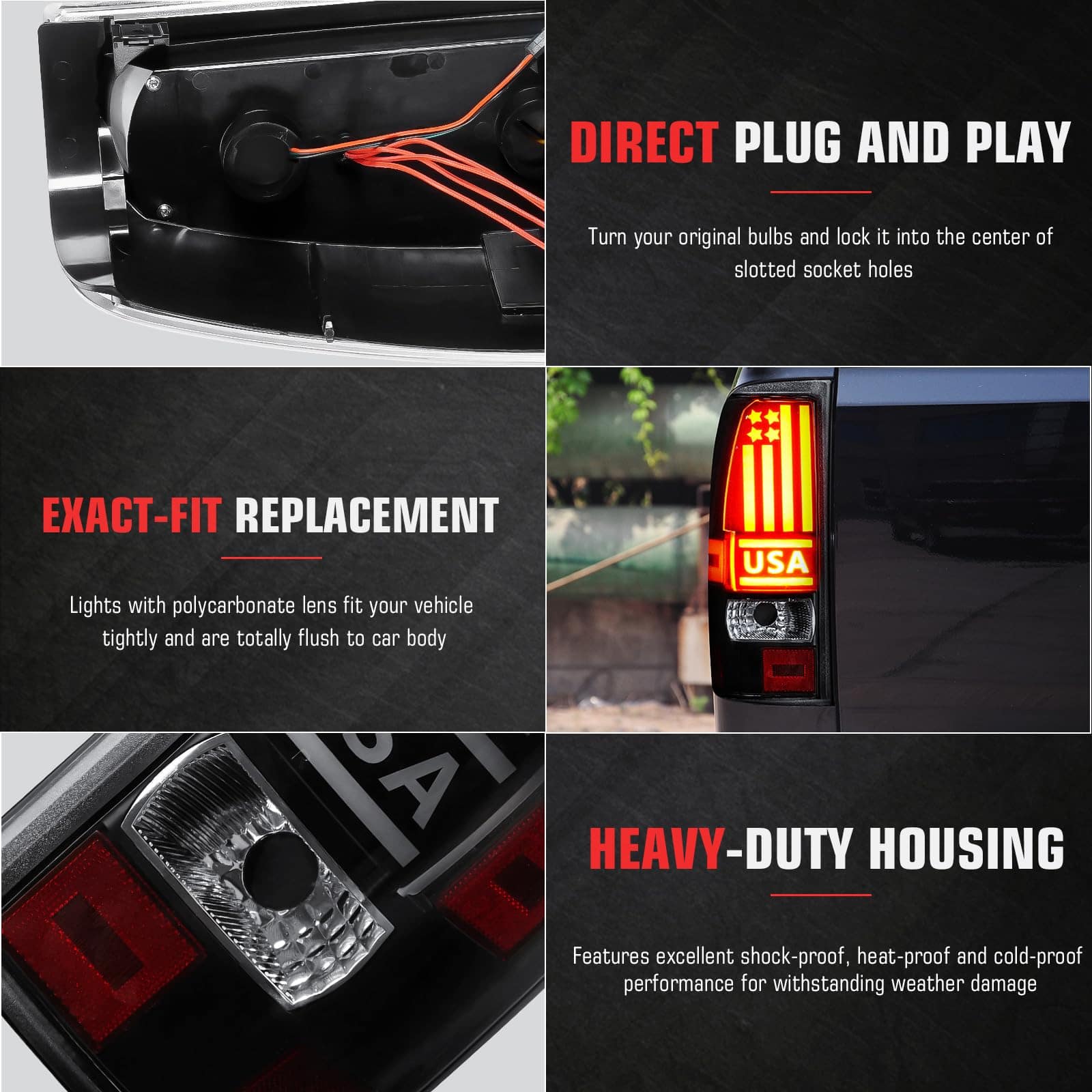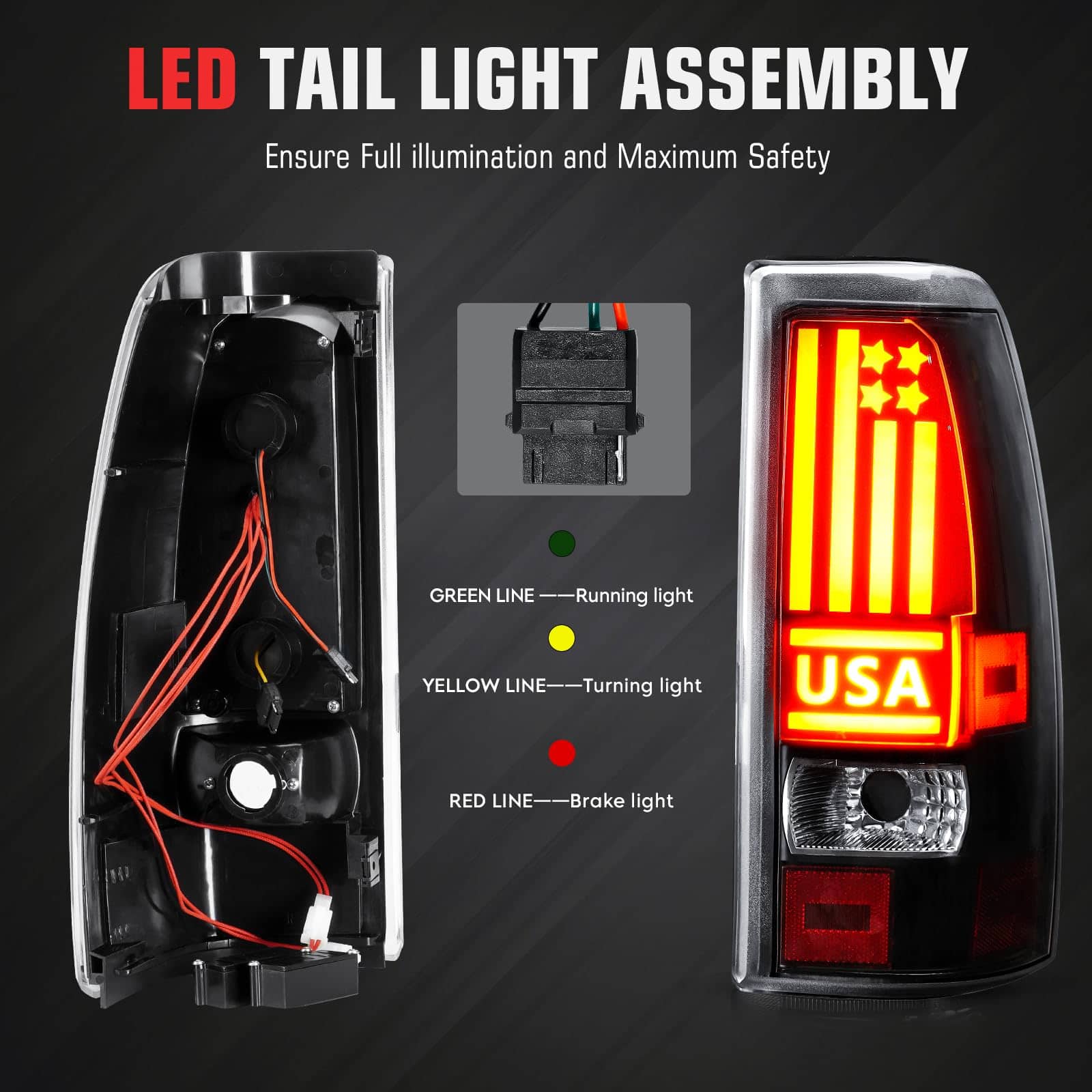 Juego de Luces Traseras Led, Par de Luces Traseras + 3er Freno para Chevy Silverado 1500 2500 HD 1999-2002, Sierra 1500 2500 HD 1999-2003 Fleetside