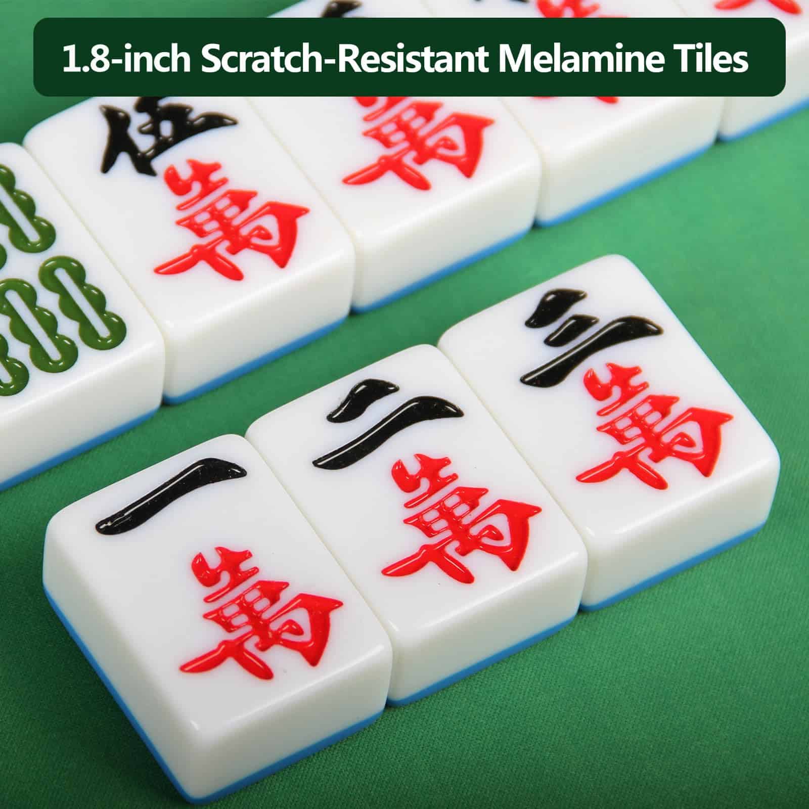 Juega a emocionantes partidas de Mahjong con este set de alta calidad. Cada baldosa está cuidadosamente diseñada para proporcionarte la mejor experiencia de juego. Hecho de melamina duradera, este juego es resistente y tiene un gran peso. El set viene con 144 baldosas, incluyendo círculos, bambúes, personajes, dragones, vientos, flores y estaciones. Por favor, ten en cuenta que este juego está diseñado para seguir las reglas chinas, por lo que no contiene cartas comodín ni estantes y no se puede utilizar para jugar a las reglas americanas / occidentales. Tu satisfacción es nuestra prioridad, por lo que puedes comprar con confianza. Si tienes alguna pregunta, no dudes en contactarnos. Siempre estamos detrás de nuestro producto para brindar el mejor servicio a nuestros clientes.