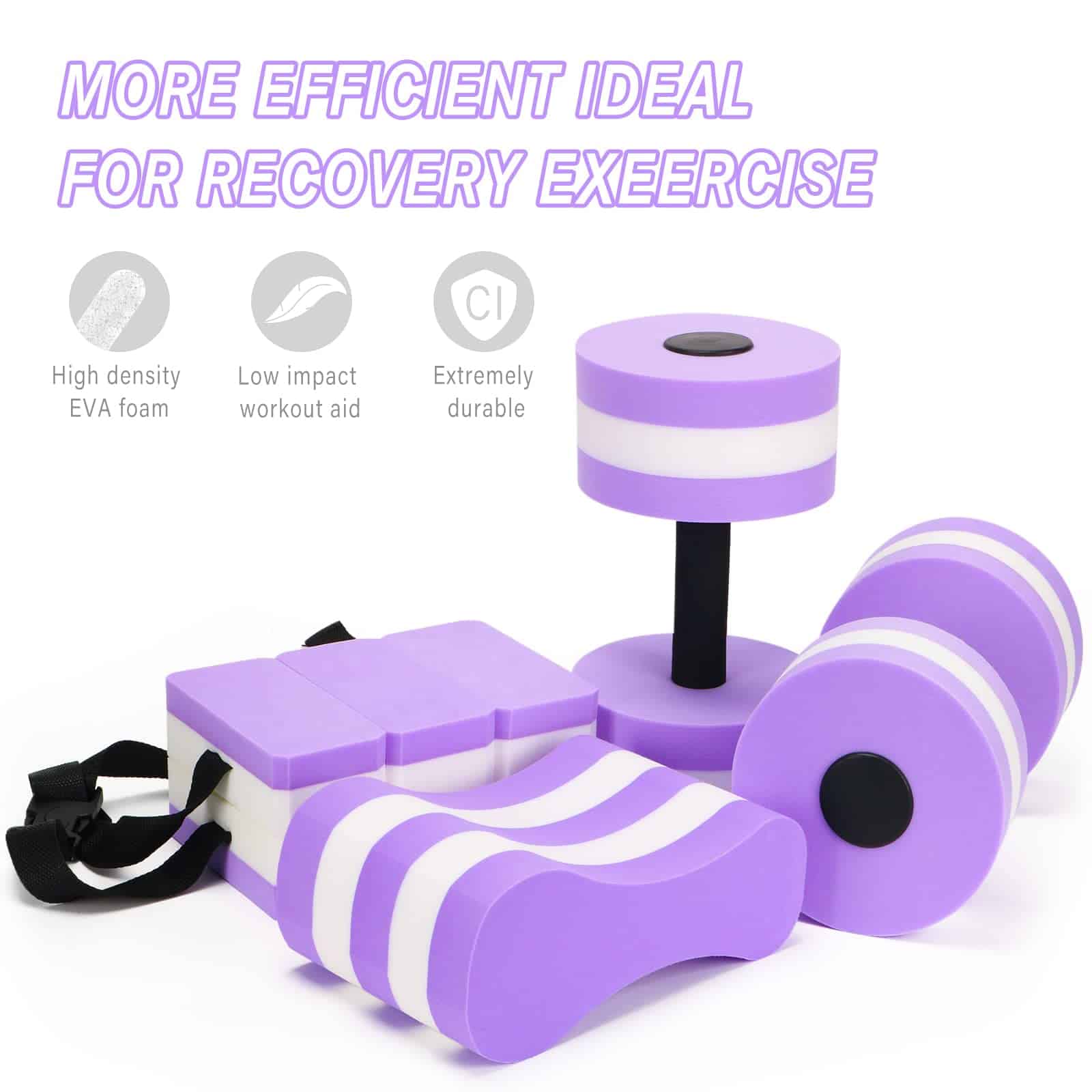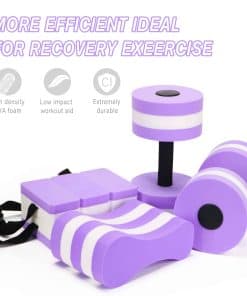 1. SET COMPLETO TODO EN UNO Este conjunto de fitness acuático tiene todas las herramientas esenciales que necesitas para hacer ejercicio acuático. Incluye 2 mancuernas de agua de espuma de EVA de alta densidad, 1 cinturón de natación, 2 guantes de natación.