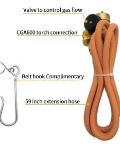 Extension Hose designed specifically for use with Propane or MAPP Torches. The package includes a 1.5m long hose and a convenient belt hook for easy portability. Made with high-quality materials to ensure durability and safety during use. Ideal for connecting your torch to the gas source with ease. A must-have accessory for outdoor cooking enthusiasts.