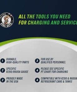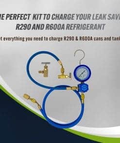 Juego de Manguera y Manómetro para Carga Completa de R290 y R600A de Leak Saver con Adaptador de Válvula K28 (ICOR) e Interruptor de Lata de Punción – Kit de Herramientas HVAC – Hecho en EE. UU. Este kit de carga completo incluye todo lo que necesitas para cargar con éxito refrigerantes R290 y R600A. Viene con un manómetro específico para R290 y R600A que simplifica las lecturas de presión y temperatura, adaptadores de lata de punción y adaptadores de válvula de cierre. El manómetro tiene una cubierta protectora para mayor durabilidad. Compatible con todos los estilos de latas y tanques de R290 y R600A, este kit es versátil y confiable. Confía en los profesionales de HVAC con este kit de Leak Saver, que ha vendido más de 3 millones de unidades de su fórmula sellante desde 2015. Utiliza los mismos productos en los que confían los profesionales de HVAC para tus necesidades de carga de refrigerante.