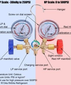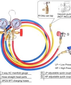Compatible con la carga de refrigerantes R12 R22 R134a R404a. Perfecto para el aire acondicionado automotriz y doméstico, para evacuación/vacío, chequeo diagnóstico, carga y recuperación de freón.