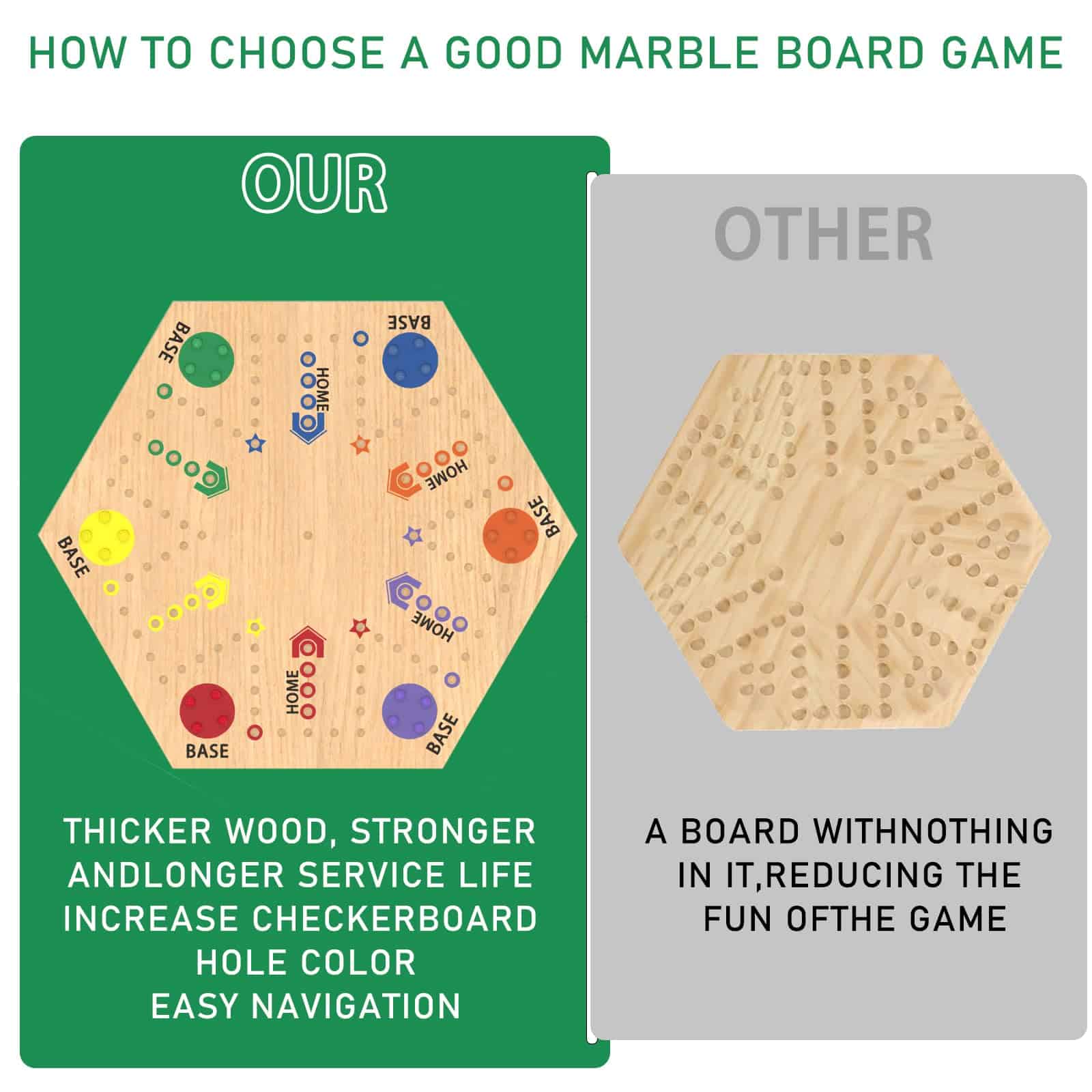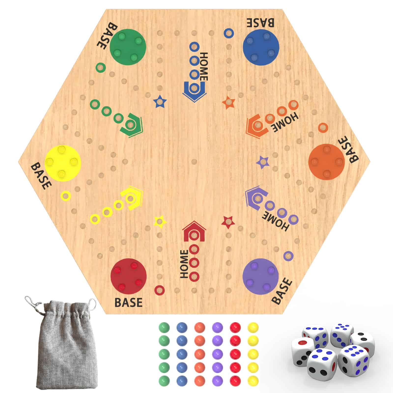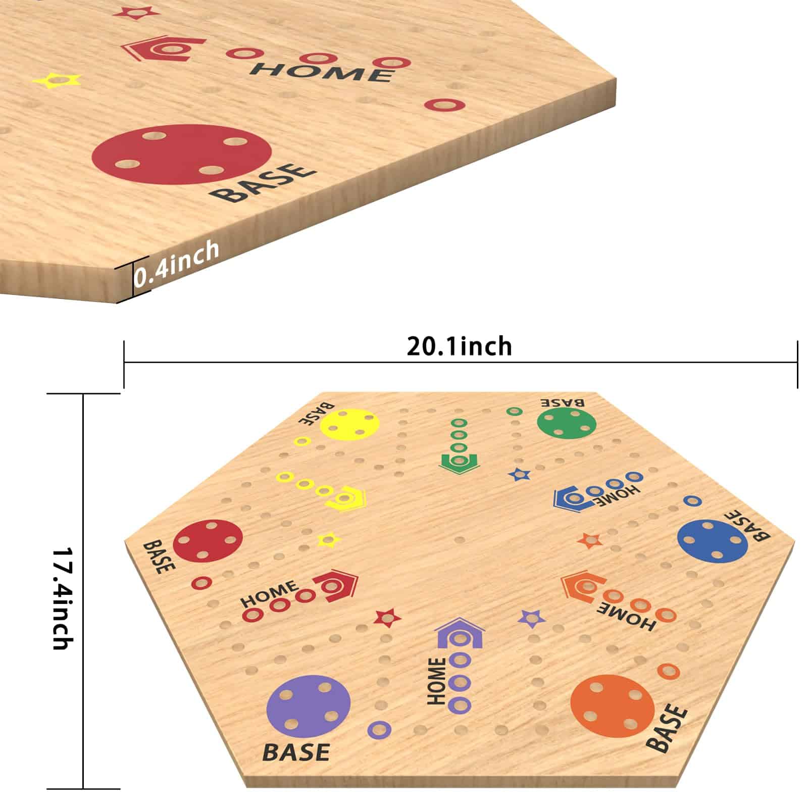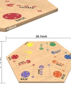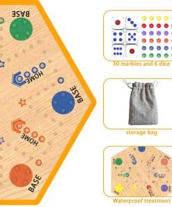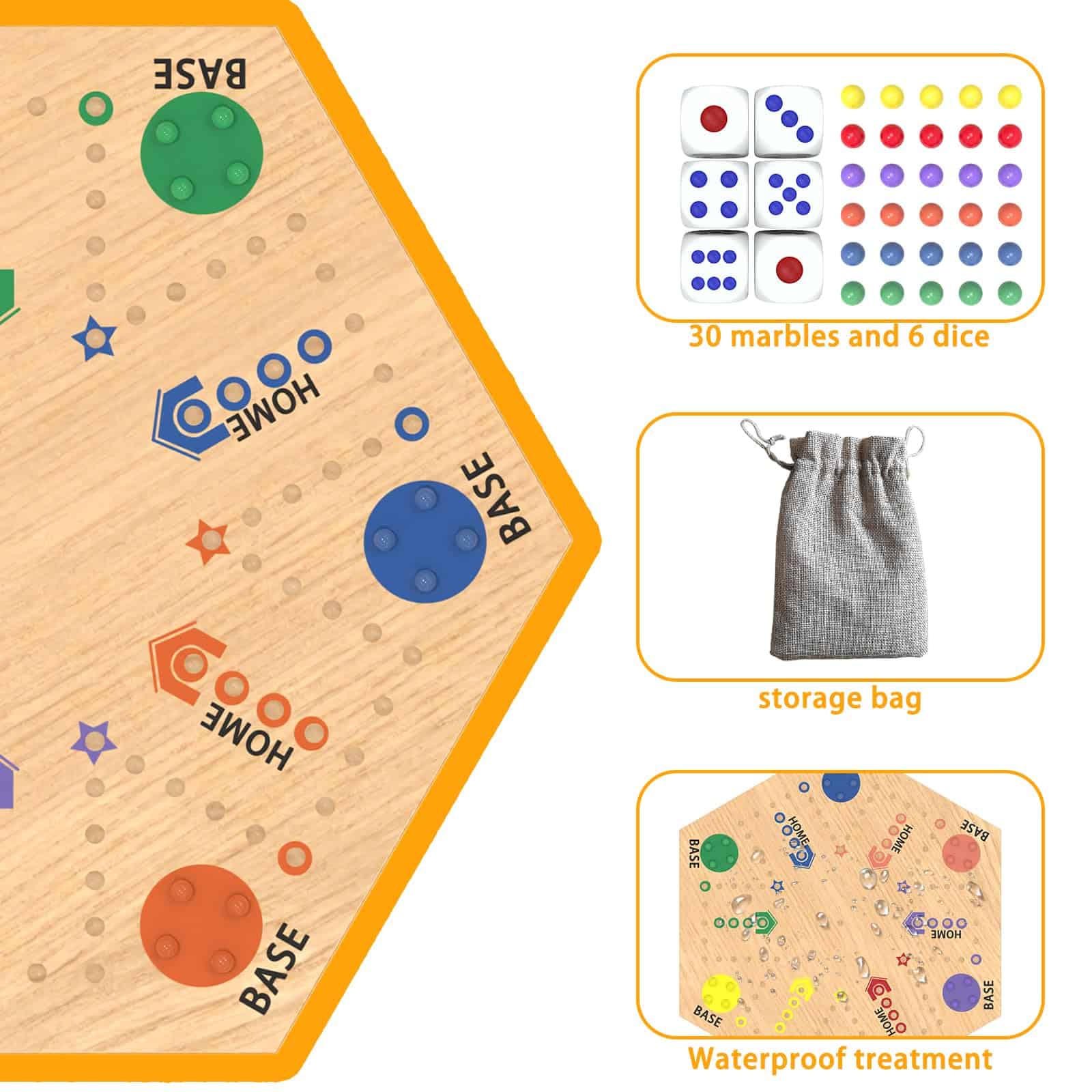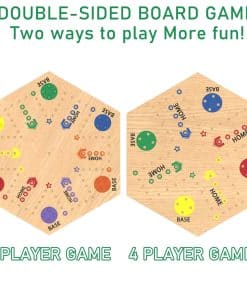 Aggravation Board Game, Wahoo Board Game, 20″ Tablero de Madera Original de Canicas Pintado por Doble Cara, Juego de Tablero Fast Track para 6 y 4 Jugadores con 30 Canicas, Tablero de Juego de Canicas de Madera con Bolsa de Lona