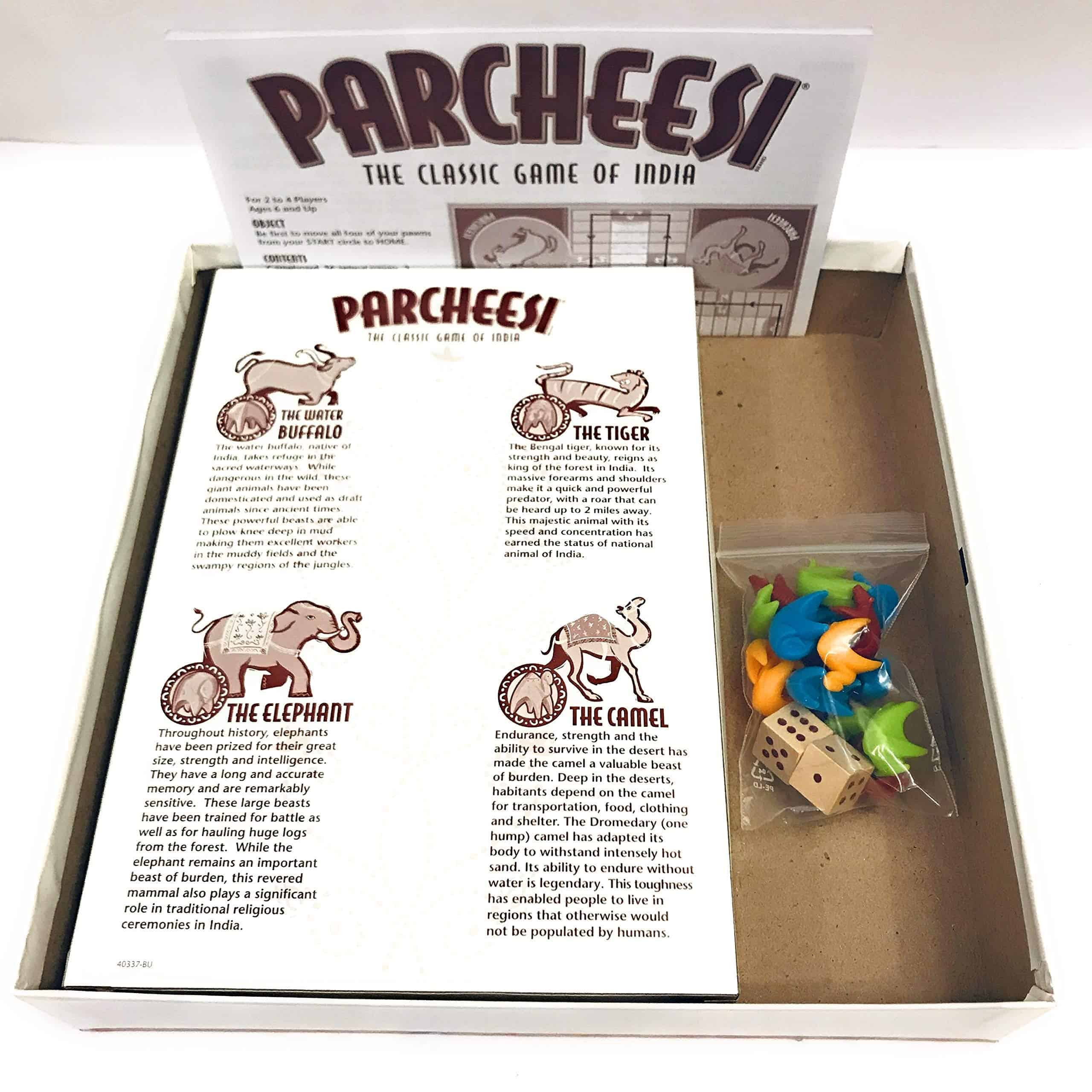 Este juego clásico de carrera y persecución ha sido un favorito por más de 100 años. Juego de mesa de Parchís con peones de animales representando 4 de los animales más reverenciados de la India. El objetivo es conseguir que tus 4 peones de animales lleguen de Inicio a Casa y ganar la partida. También puedes formar un bloqueo con 2 peones para evitar que tu oponente avance. Ideal para 2 a 4 jugadores. Perfecto para una noche de diversión en familia o con amigos.