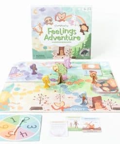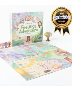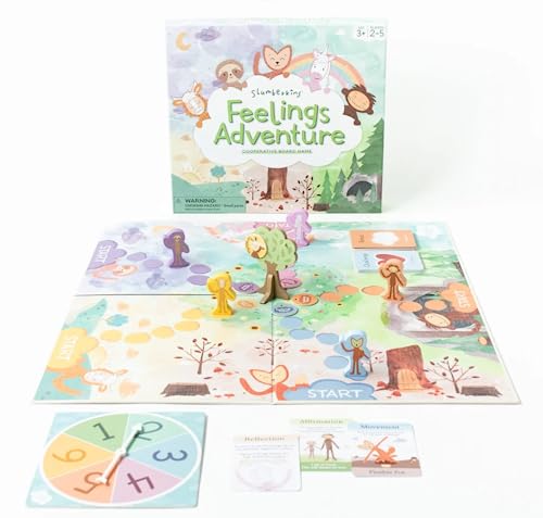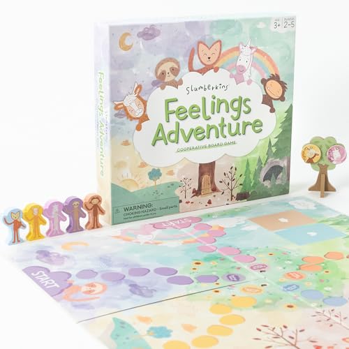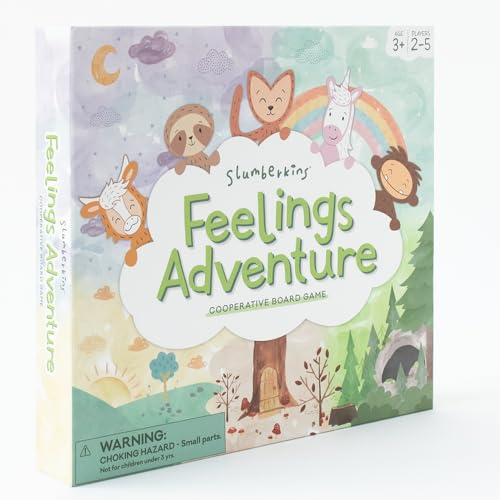 Oh no! Todos los sentimientos han desaparecido en el Bosque de Sentimientos de Slumberkins! Ahora, Bigfoot, Unicornio, Yak y Zorro deben embarcarse en una aventura para encontrar y recoger los sentimientos en el Árbol de los Sentimientos en el corazón de la Tierra de Slumberkins. Trabaja en equipo para ayudar a los Kins a completar su misión antes de que se acabe el tiempo. Ideal para niños y padres, maestros y terapeutas. Este juego emocional social promueve la identificación de emociones, la autoexpresión, la regulación emocional, la resolución de problemas, la cooperación, el desarrollo social y el seguimiento de instrucciones. Lo que incluye: 1 tablero de juego, 1 spinner de juego, 32 tarjetas de desafío, 10 tarjetas, 15 fichas de sentimientos, 1 árbol de sentimientos (2 piezas separadas) y 5 peones. ¡Vamos a desarrollar habilidades para todos los grandes sentimientos de la vida juntos! Debido a las piezas pequeñas, este juego tiene una clasificación por edad de 3+. ¡Estamos orgullosos de anunciar que el Juego de Mesa de Aventuras Slumberkins Feelings ha sido elegido como un Juguete Destacado para las Fiestas en la Guía de Regalos para las Fiestas de 2023 de The Toy Insider!