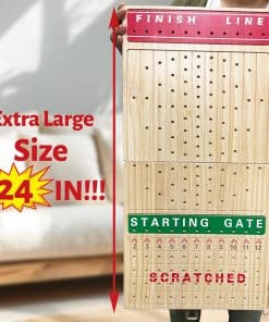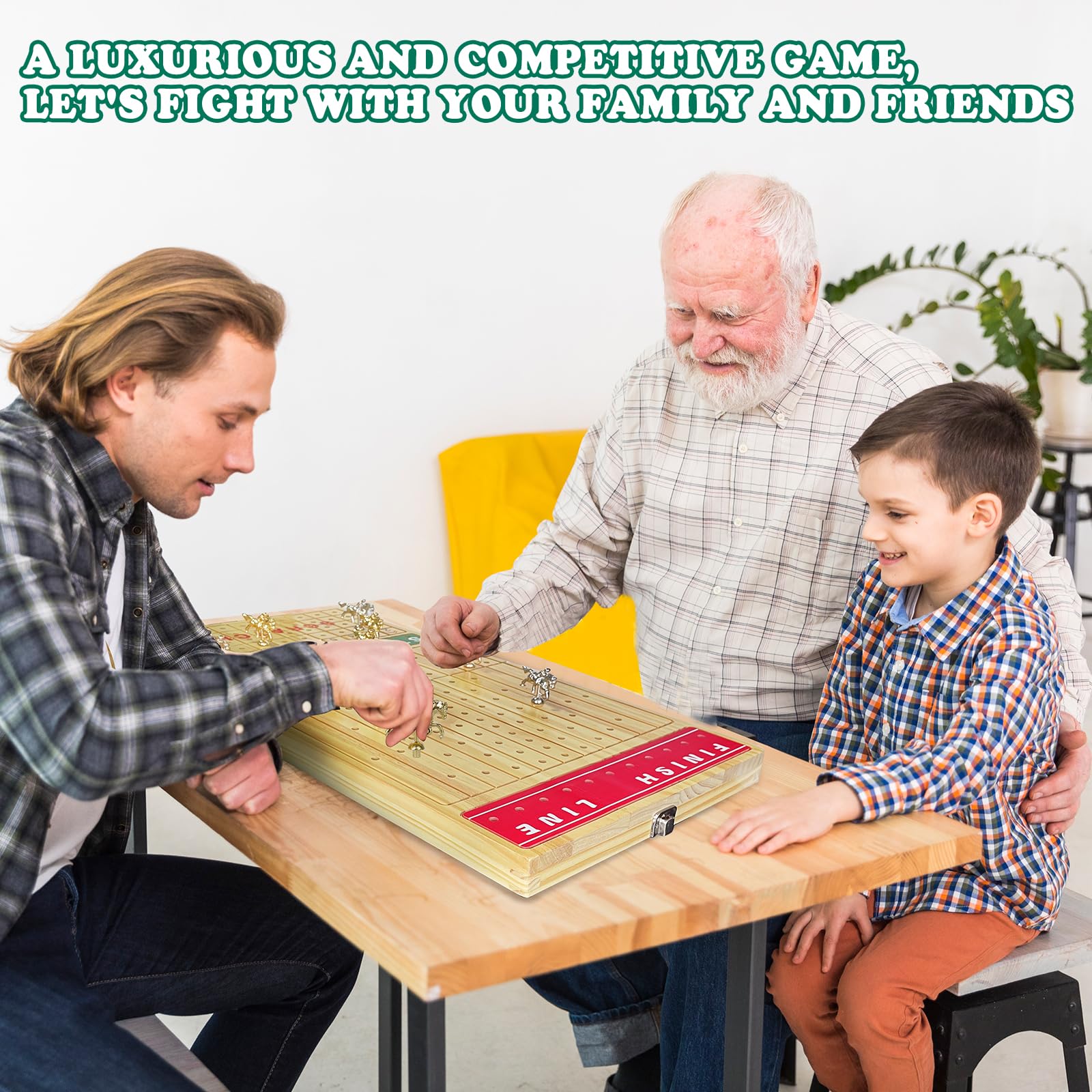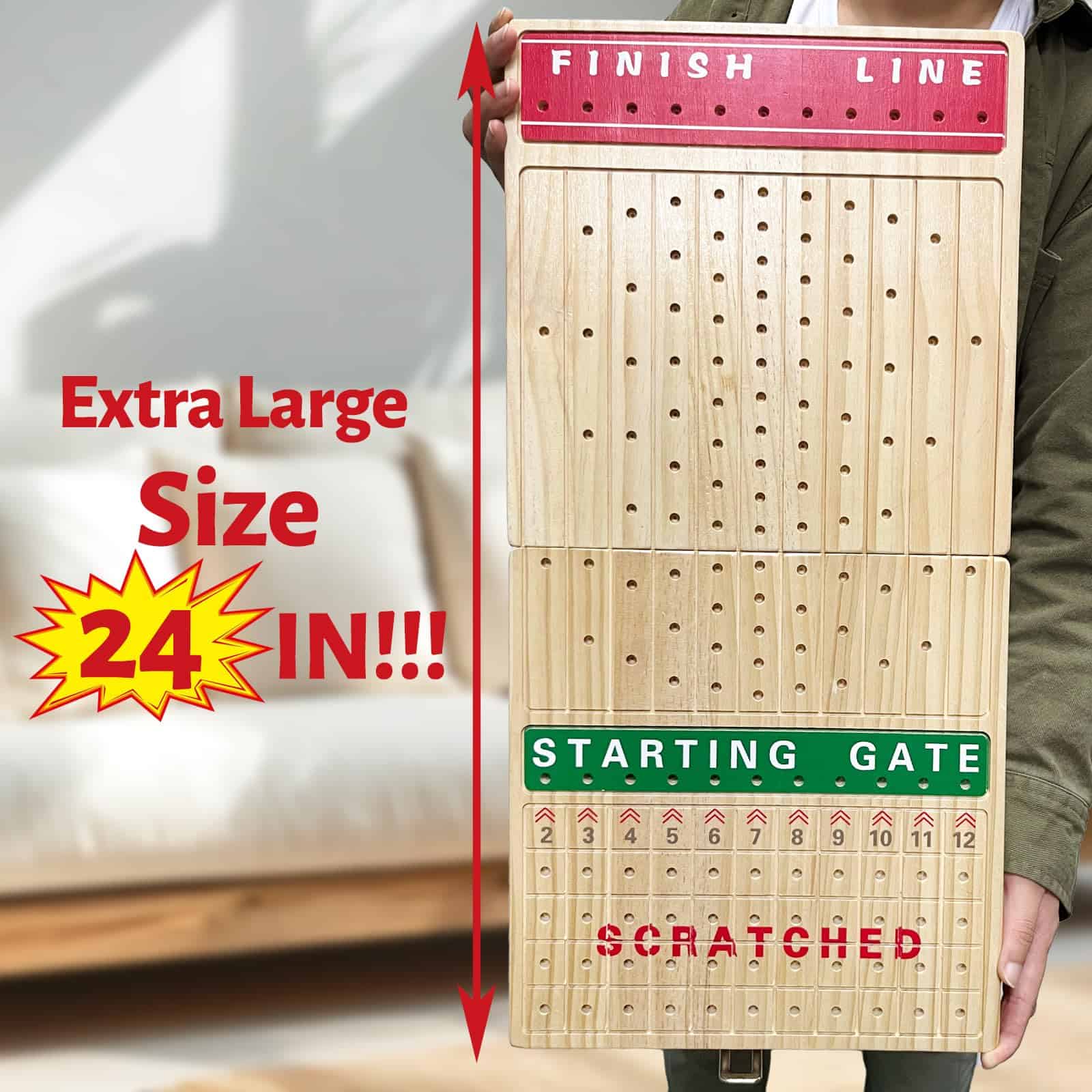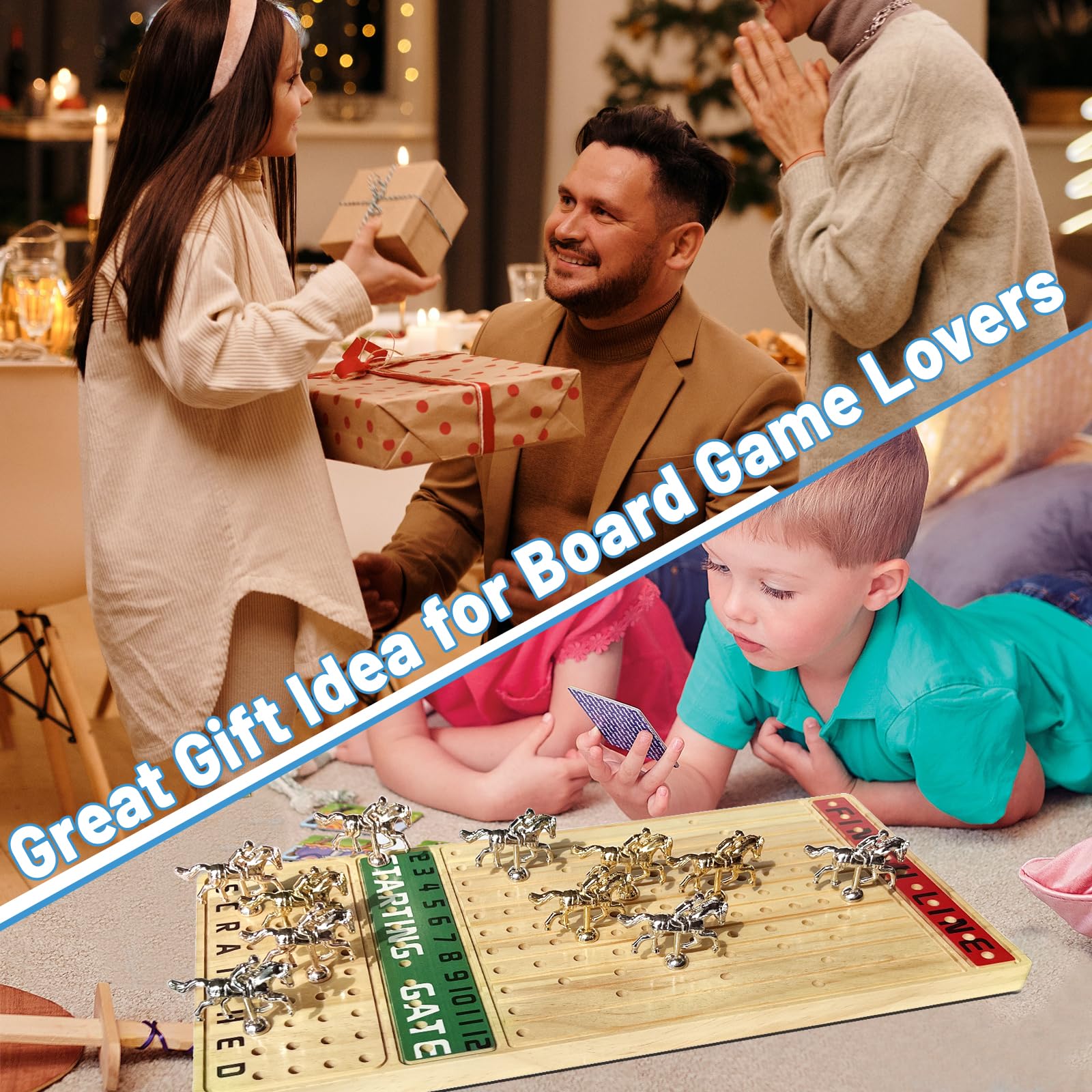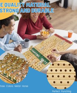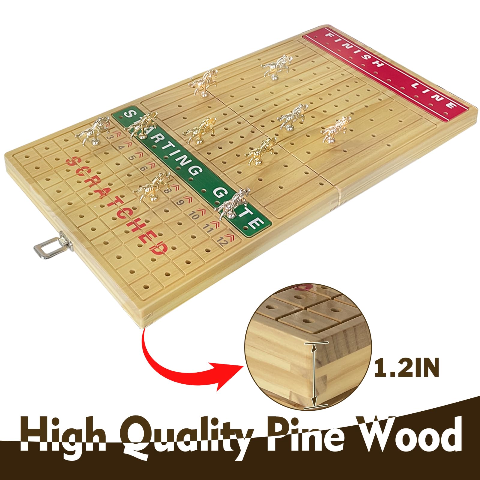 Juego de mesa de carreras de caballos grande de 24 pulgadas: 14 caballos metálicos de lujo, tablero de juego de carreras de caballos de madera maciza engrosada, 5 dados, 2 barajas de cartas, botón de crupier y botón ciego & 5 dados para fiestas y juegos de azar. Eleva tu experiencia de juego: este juego de mesa de carreras de caballos de lujo viene con un tablero de madera maciza engrosada, proporcionando una base resistente y lujosa para tus sesiones de juego. Disfruta de la emoción de la carrera con amigos y familia en tu próximo encuentro. Caballos de metal robustos: con 14 caballos de metal robustos, este set añade un toque de elegancia y durabilidad a tu juego. Cada caballo está diseñado para resistir la emoción de la carrera, asegurando un juego fluido en cada ocasión. Set completo para diversión competitiva: con 5 dados, 2 barajas de cartas, y botones de crupier y ciego incluidos, este set completo tiene todo lo que necesitas para una emocionante experiencia de carreras de caballos. Es perfecto para fiestas y noches de juego. Juego estratégico: usa los dados y las cartas para planificar tu camino hacia la victoria. Los elementos adicionales de azar y habilidad hacen que cada juego sea único, manteniendo a los jugadores comprometidos y deseando volver por más. Ideal para reuniones sociales: ya sea que estés organizando una fiesta o simplemente teniendo una noche de juego casual, este juego de mesa de carreras de caballos está diseñado para reunir a las personas durante horas de diversión y competencia amigable