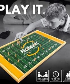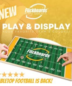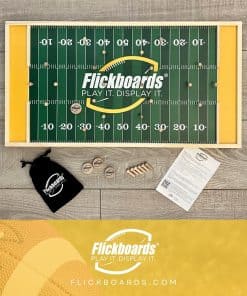 Las fiestas previas al juego tienen una variedad de actividades desde lanzamiento de bolsas de maíz y barbacoa hasta beer pong y más. Pero cuando la fiesta comienza a la 1 y el kickoff es a las 3:20, debes aprovechar tu tiempo sabiamente. El lanzamiento de bolsas de maíz toma mucho tiempo, el beer pong se va volando con el viento, y no quieres saltarte la comida. Presentamos FLICKBOARDS LLC nuestro divertido y rápido juego de madera que se mantiene firme frente al viento y solo tarda unos 10 minutos en jugar, lo que significa que tu comida del día del partido no se enfriará. En el amarillo de tu equipo, el tablero de juego decorativo de madera de 23.75 x 12.5 x 0.75 pulgadas (60.33 x 31.75 x 1.9 cm) también sirve como arte de pared. Juega. Exhibe. Fácil de aprender, Flickboards son divertidos para todas las edades. Sé el primero en evitar las clavijas de los jugadores y lanzar el chip a la zona de anotación 5 veces para asegurar la victoria. Mejora tu juego introduciendo penalizaciones y desafíos. Advertencia: Este producto puede exponerte a químicos que están enumerados en el Estado de California como causantes de cáncer y defectos de nacimiento u otros daños reproductivos.