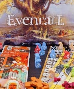 EVENFALL – Es Evenfall y los Clanes de la Magia se están preparando para una nueva era. Evenfall es el momento en el que los límites de la realidad colapsan y lo sobrenatural despierta. El Árbol del Mundo abre sus portales brillantes hacia regiones desconocidas y distantes. Envía Brujas de tu clan a descubrir y controlar nuevos Lugares de Poder. Úsalos para rituales arcanos y lucha por el favor de las Piedras de Poder. ¡Pero solo hay un asiento en el Trono Encantado! ¿Tienes las habilidades para liderar al mundo hacia una nueva era? Evenfall es un juego de cartas y construcción de motores con mecanismos tanto novedosos como familiares para 1 a 4 jugadores. Administra tus recursos, ejecuta tus acciones en un orden eficiente y descubre sinergias entre cartas y acciones que generan puntos de victoria. El juego termina después de tres rondas, luego el jugador con más puntos gana.