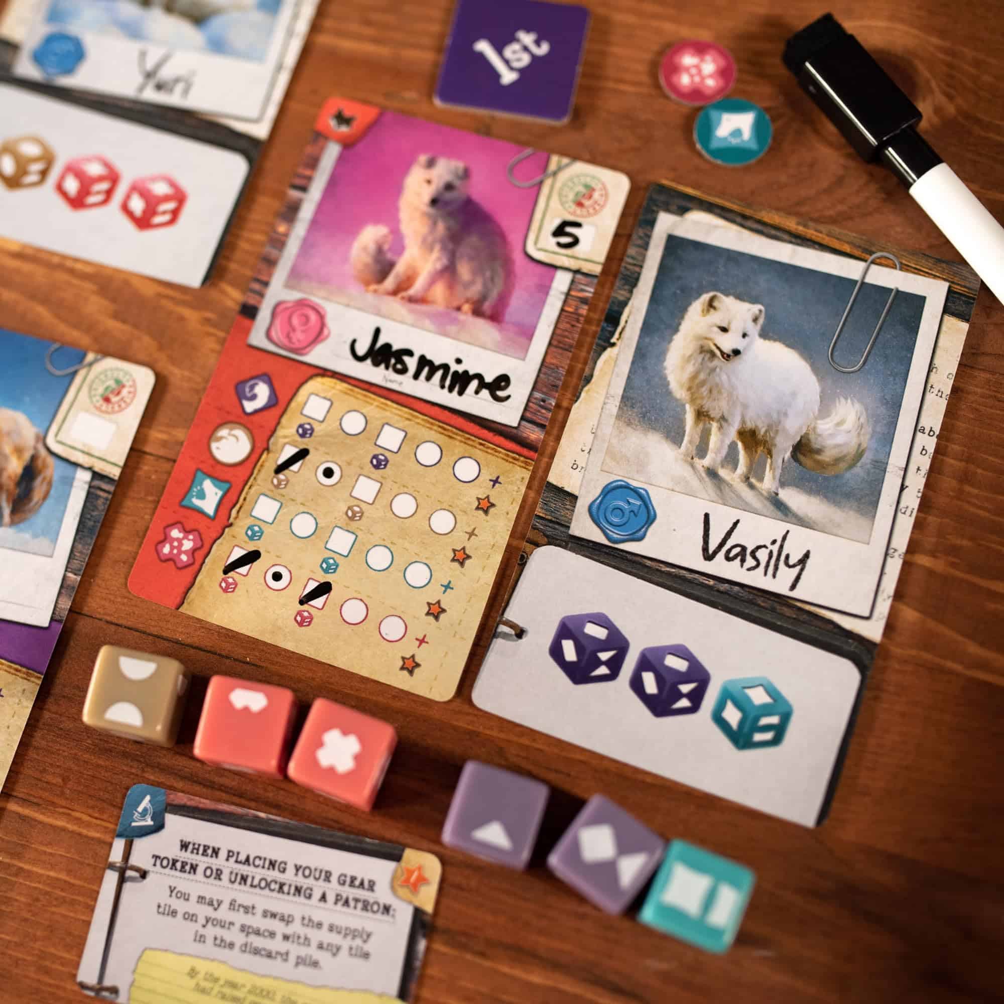 En 1958, Demitri Belyaev y Lyudmila Trut comenzaron un experimento de domesticación. De un gran grupo de zorros, seleccionaron a aquellos que reaccionaban a los humanos con más curiosidad y menos agresividad. En cada generación, seleccionaban solo los cachorros más amigables para convertirse en padres, con la esperanza de recrear el proceso que condujo originalmente a la domesticación miles de años atrás. En el juego de mesa Experimento de Zorros, los jugadores criarán sus propios zorros domesticados a lo largo del juego. Cada ronda representa una generación de crianza, en la que cada jugador elegirá una pareja de zorros padres para criar. Tomarán dados de acuerdo con los rasgos que tengan y los lanzarán, intentando mostrar símbolos completos de rasgos en las cartas de sus cachorros. ¡Estos cachorros luego se convertirán en padres en la siguiente ronda! ¡Sé estratégico en los zorros que elijas criar, porque los correctos te ayudarán a completar estudios y complacer a tus patrocinadores para ganar puntos y vencer en el juego!