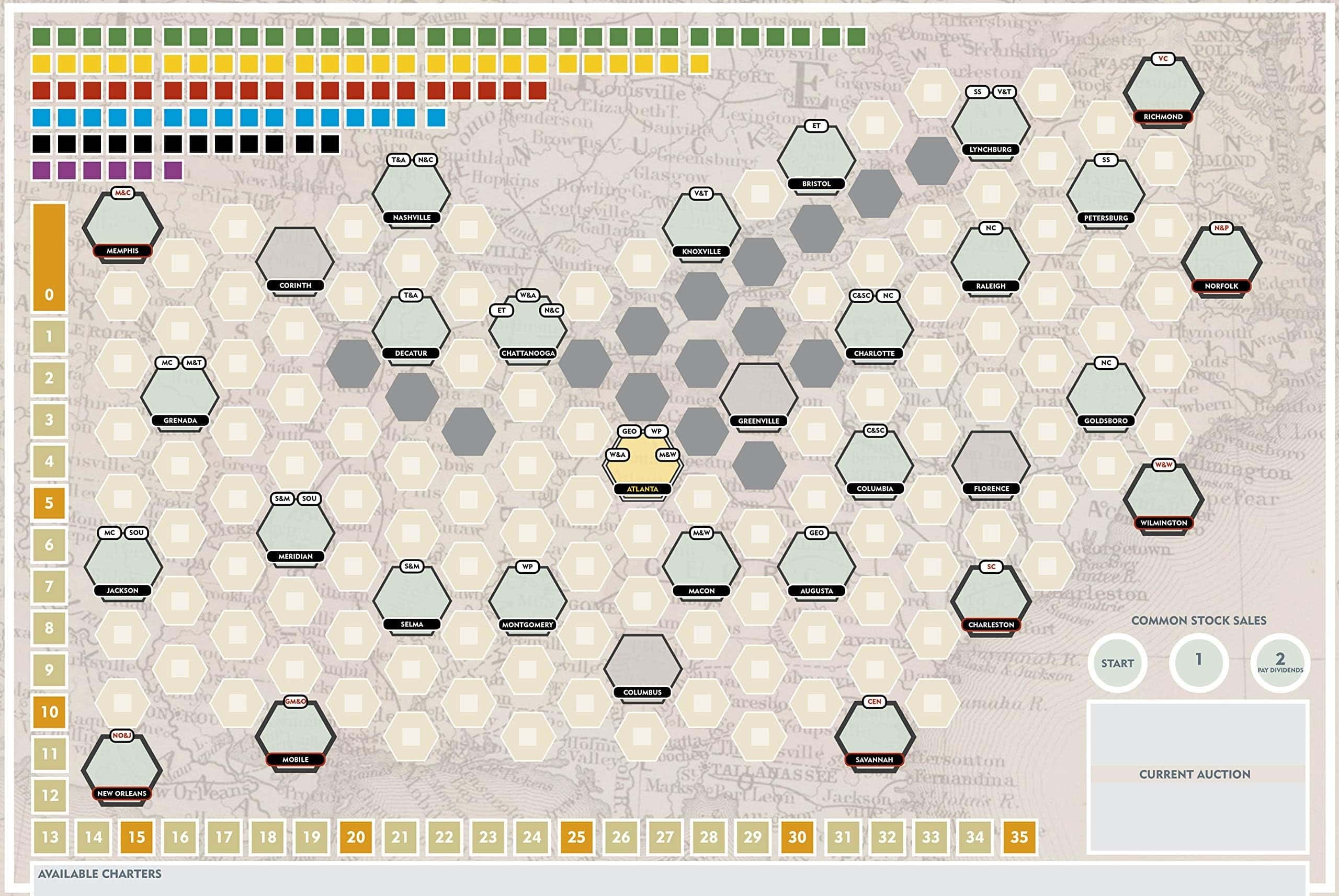 Los jugadores representan a los fundadores de los primeros ferrocarriles en el Sur de los Estados Unidos en la época anterior a la Guerra Civil. Compiten entre sí para fundar empresas, expandir sus líneas a nuevas ciudades, conectarse con líneas complementarias y generar dividendos para sus accionistas. ¡El jugador que mejor maneje estos objetivos será el ganador en el mundo altamente competitivo de los primeros ferrocarriles!