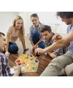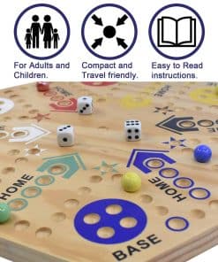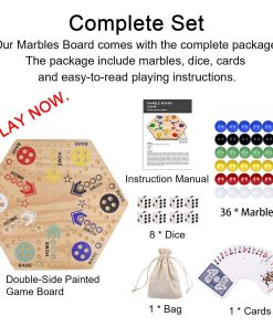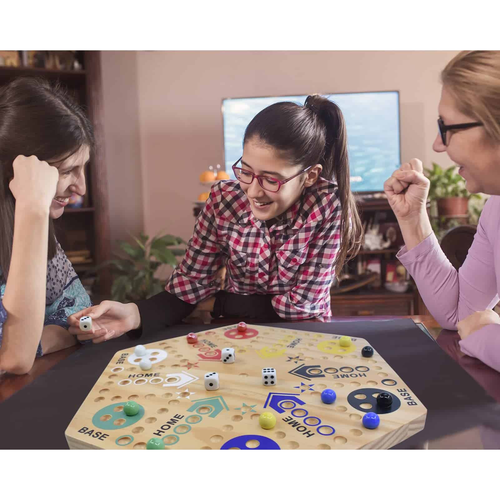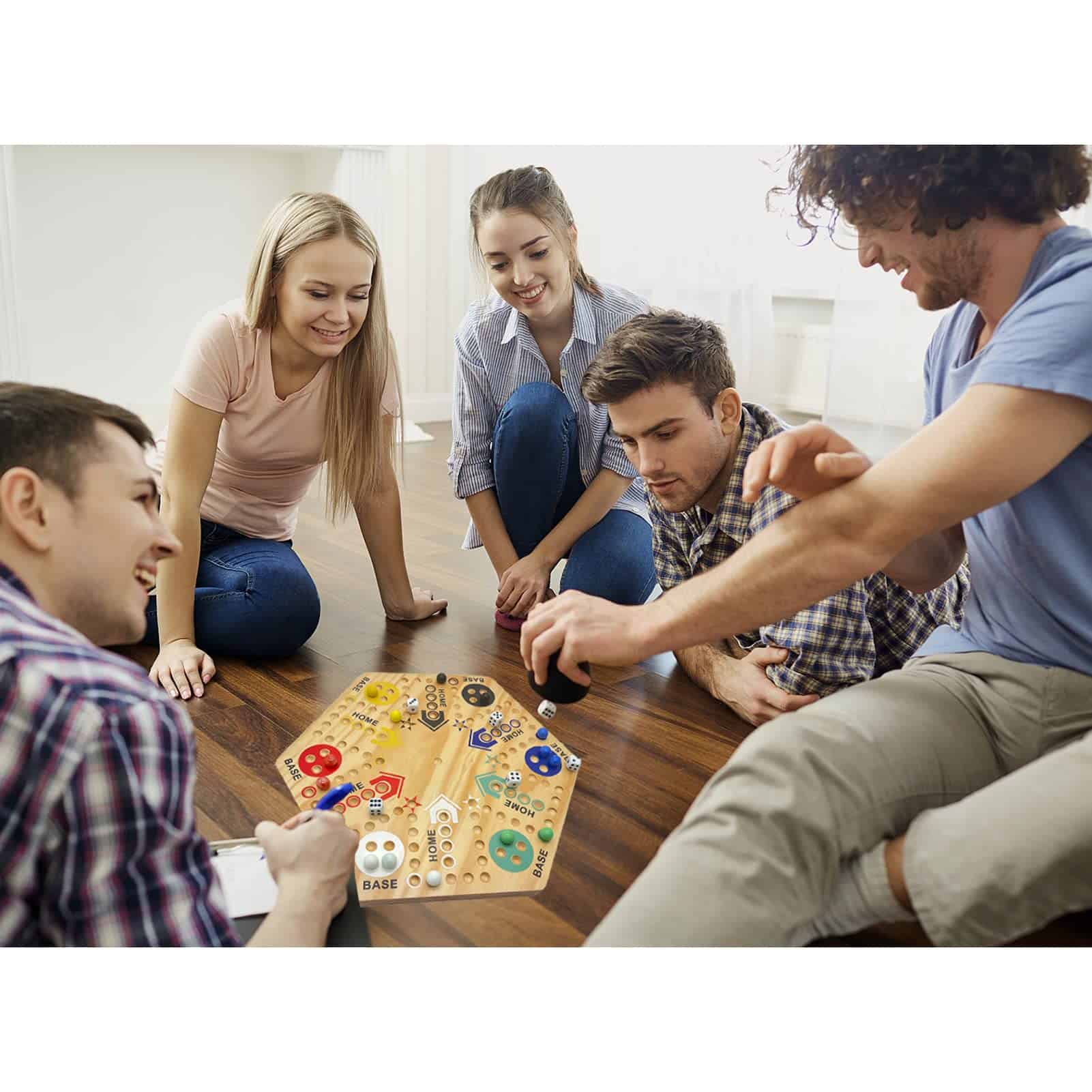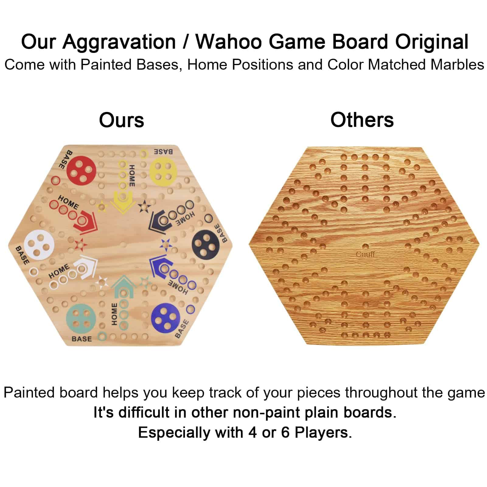 Juego de Tablero de Mármol Original Juego de Tablero de Madera Wahoo de Doble Cara de 24 Pulgadas para 6 y 4 Jugadores, Tablero de Juego con 6 Colores 36 Marbles, 8 Dados para Amigos y Familiares