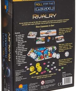 Rivalry, la 2da expansión para el increíblemente popular Roll for the Galaxy, es efectivamente tres expansiones en una. Agrega un impresionante total de 437 componentes, incluidas nuevas facciones, nuevos dados, nuevos mundos natales, nuevas losetas de juego e incluso un nuevo dado personalizable. En la expansión Deal, se agrega una nueva fase al juego utilizando los dados personalizables y permitiendo a los jugadores participar en acuerdos e intercambiar algunos activos por otros. Con el Orb, se agrega una fase de investigación al juego, permitiendo a los jugadores modificar sus dados personalizables para obtener beneficios inmediatos o efectos mejorados. Rivalry requiere el juego base Roll for the Galaxy para jugar. Rivalry es compatible con la expansión Ambition.
