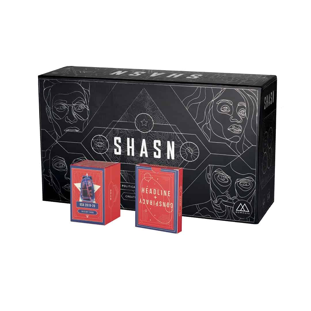 Edición Retail USA del juego de mesa SHASN. Realiza tu camino hacia el poder tomando decisiones estratégicas en este emocionante juego de mesa. La caja incluye todos los componentes necesarios para una experiencia de juego completa: cajas especiales para las cartas de votante e ideólogo, tapete de juego, tapetes de jugador, fichas de votante de madera, cartas ideólogo, cartas de votante y mucho más. Sumérgete en el mundo de la política y la toma de decisiones en un juego que te mantendrá entretenido durante horas. ¡Prepárate para luchar por el poder y demostrar tu habilidad estratégica!