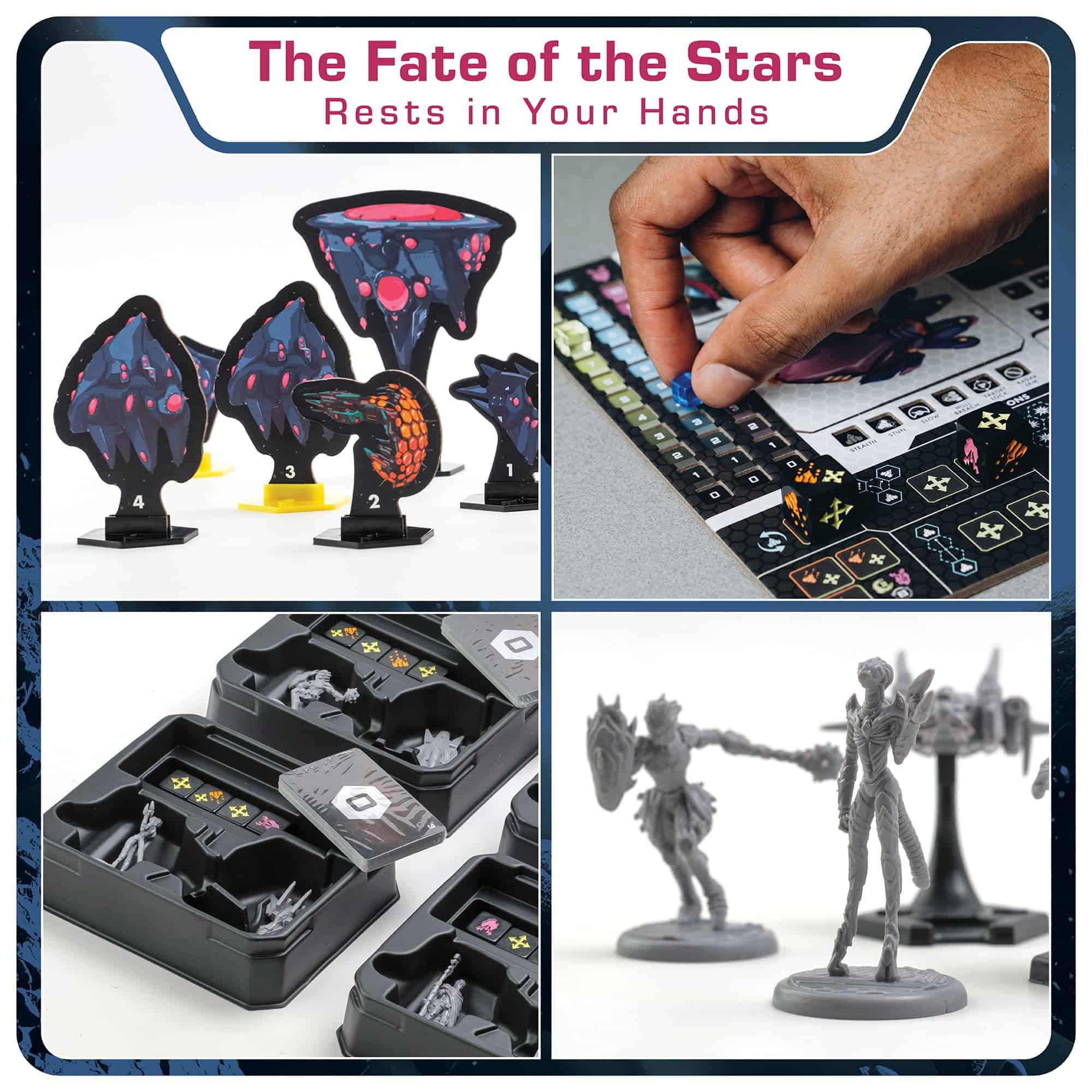 Embárcate en un emocionante viaje cósmico con un juego de mesa cooperativo de ciencia ficción impulsado por la narrativa para 1-4 jugadores ambientado en el Sistema Draconiano. Te lleva en un viaje estratégico a través del espacio, descubriendo planetas únicos y aventuras emocionantes en el camino. Eleva tu noche de juegos y entretenimiento en interiores con esta experiencia estelar. En este juego de conquista estratégica de planetas, tanto niños como adultos pueden participar en un juego desafiante, donde la planificación cuidadosa es la clave para superar a los oponentes y reclamar la victoria en el reino intergaláctico. A lo largo del juego, luchas en épicas batallas espaciales, mejoras tu nave y exploras los confines del espacio. Pero las preguntas siguen en pie – ¿quiénes te atacaron, qué quieren y podrás ayudar a reconstruir la civilización de Medellian? Prepárate para batallas intergalácticas que pondrán a prueba tus habilidades de juego y toma de decisiones mientras navegas por el cosmos. Stars of Akarios es un épico juego cooperativo que se basa en cuatro pilares de juego: Exploración Espacial, Combate Espacial, Exploración Mundial y Personalización de Piloto/Nave. Entonces, equípate y explora las Estrellas de Akarios, donde el universo se despliega ante tus ojos y donde cada movimiento cuenta!