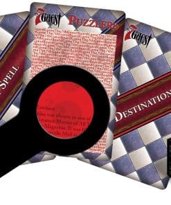 Lo que obtienes en la Caja: – Tablero de Juego (1); – Cartas de Rompecabezas (300); – Cartas de Destino (108); – Cartas de Hechizo Misterioso (36); – Dado Mágico (1); – Decodificador Espía Mágico (1); – Miniaturas de Personajes (7); – Folleto de Reglas (1); – Una Cantidad Misteriosamente Asombrosa de Diversión (ilimitada)