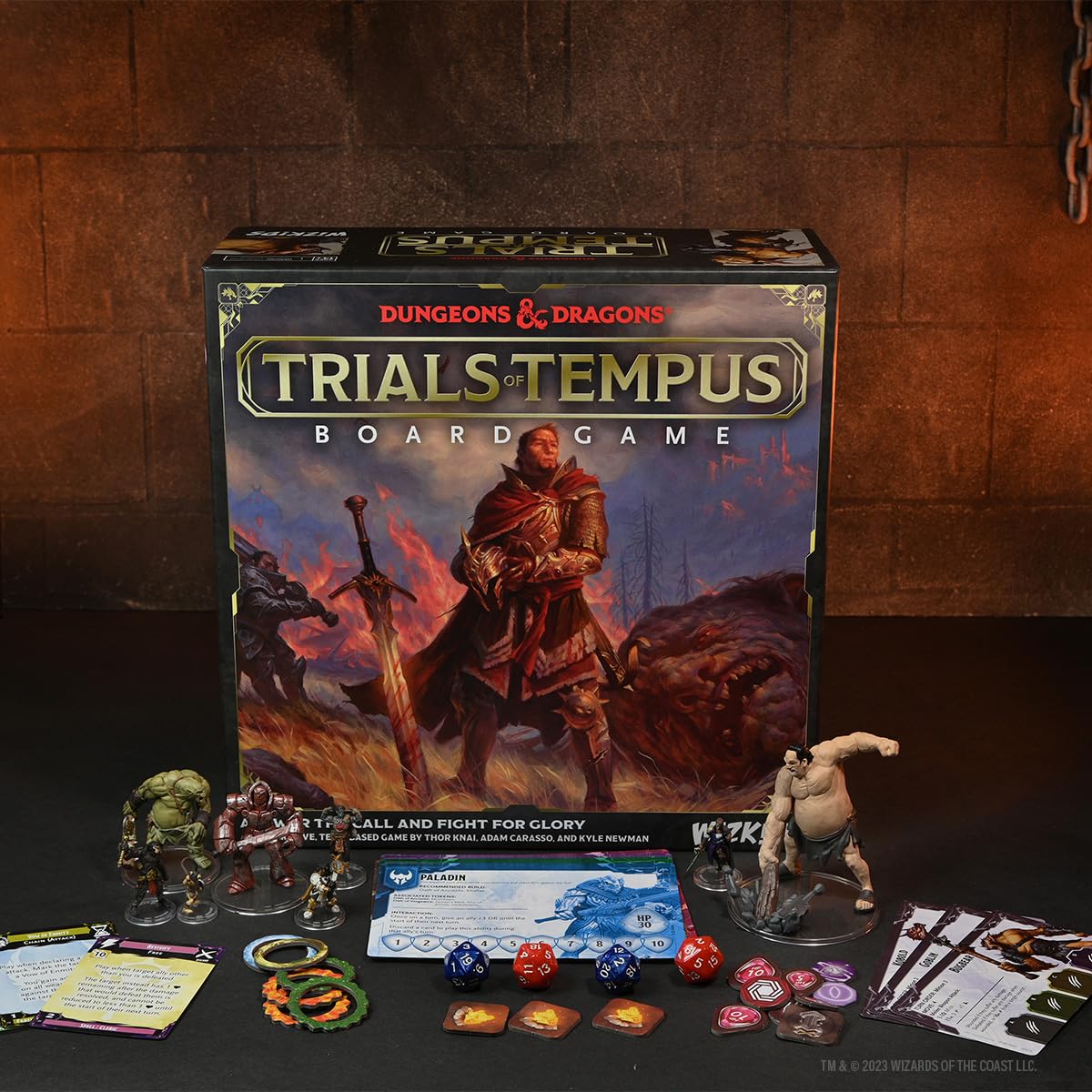 Dungeons & Dragons: Trials of Tempus es un juego cooperativo y basado en equipos para 2-8 jugadores, donde partidos rivales de aventureros heroicos luchan para demostrar su valía en los siempre cambiantes Battlerealms de Tempus, Dios de la Guerra! Elige sabiamente a tu Héroe, ya que las habilidades y aliados que necesitas para conquistar cada Prueba nunca son las mismas, y el Guardián que te espera al final seguramente pondrá a prueba los límites de tu valentía… o es tu astucia La Prueba lo dirá. Para ganar, tú y tu grupo deben trabajar juntos para ganar más Puntos de Victoria que tus rivales completando misiones y recolectando botín! Finalmente, debes derrotar al Guardián del Tribunal. El partido que tenga más Puntos de Victoria cuando caiga el Guardián del Tribunal gana la Prueba!