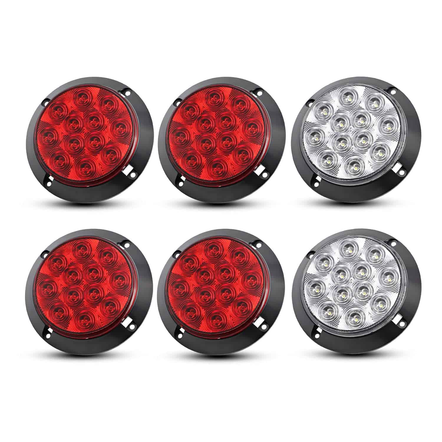 (Paquete de 6) 4 Luces Traseras de Remolque Redondas 4 Rojas + 2 Blancas 12 LED Señal de Giro 12V