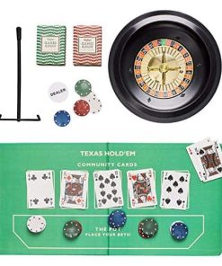 Ten una noche de grandes apostadores con este Juego de Noche de Casino de Ridley. Este set de Noche de Casino contiene todo lo que necesitas para jugar Póntoon, Póker Texas Hold-em y Ruleta. Estos juegos de azar son perfectos para fiestas y noches en grupo con amigos y familia. Tira los dados y ve cómo cambia tu suerte. Recomendado para mayores de 14 años. Este set de Noche de Casino incluye instrucciones, una ruleta, 200 fichas de póker, 2 barajas de cartas, 1 ficha de crupier, 1 tablero de juego, 2 bolas de ruleta y 1 palo de crupier. Las dimensiones del producto son 4.06 x 11.22 x 11.22. La caja con diseño geométrico ofrece un almacenamiento resistente, pero ligero para este set de juego de casino que es ideal para llevar contigo. También es una idea de regalo inspiradora para cualquier ocasión. Ridley’s inventa emocionantes, originales y de calidad juegos y juguetes para estimular la imaginación, acabar con el aburrimiento y abrir un mundo de diversión inmensa. Hemos resucitado clásicos de la vieja escuela y creado nuestra propia colección única de nuevos juegos, rompecabezas, trivia y novedades para entretener tanto a jóvenes como a jóvenes de corazón. Ridley’s diseña juegos para intrigar, asombrar e inspirar horas de diversión. Nuestros juegos ofrecen a los jugadores una experiencia verdaderamente única, con un innovador embalaje y jugabilidad original. ¡Porque divertirse nunca pasa de moda! ¡Que empiecen los juegos!