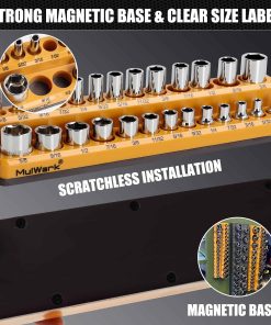 El juego de organizadores de enchufes magnéticos Mulwark es perfecto para mantener tus enchufes organizados y fácilmente accesibles. Incluye 6 organizadores de enchufes diseñados para enchufes SAE y métricos de 1/4″, 3/8″, 1/2″. Fabricados con material ABS magnético resistente para evitar daños en los enchufes. Cuenta con etiquetas para cada tamaño de enchufe, facilitando la identificación. La base magnética sólida asegura que los enchufes permanezcan en su lugar, incluso si se invierte. Este juego de organizadores de enchufes es adecuado tanto para enchufes estándar como profundos, ayudando a ahorrar tiempo al buscar el enchufe correcto. Todos los productos MulWark tienen garantía de por vida, por lo que puedes devolver el producto si presenta defectos de material o fabricación.