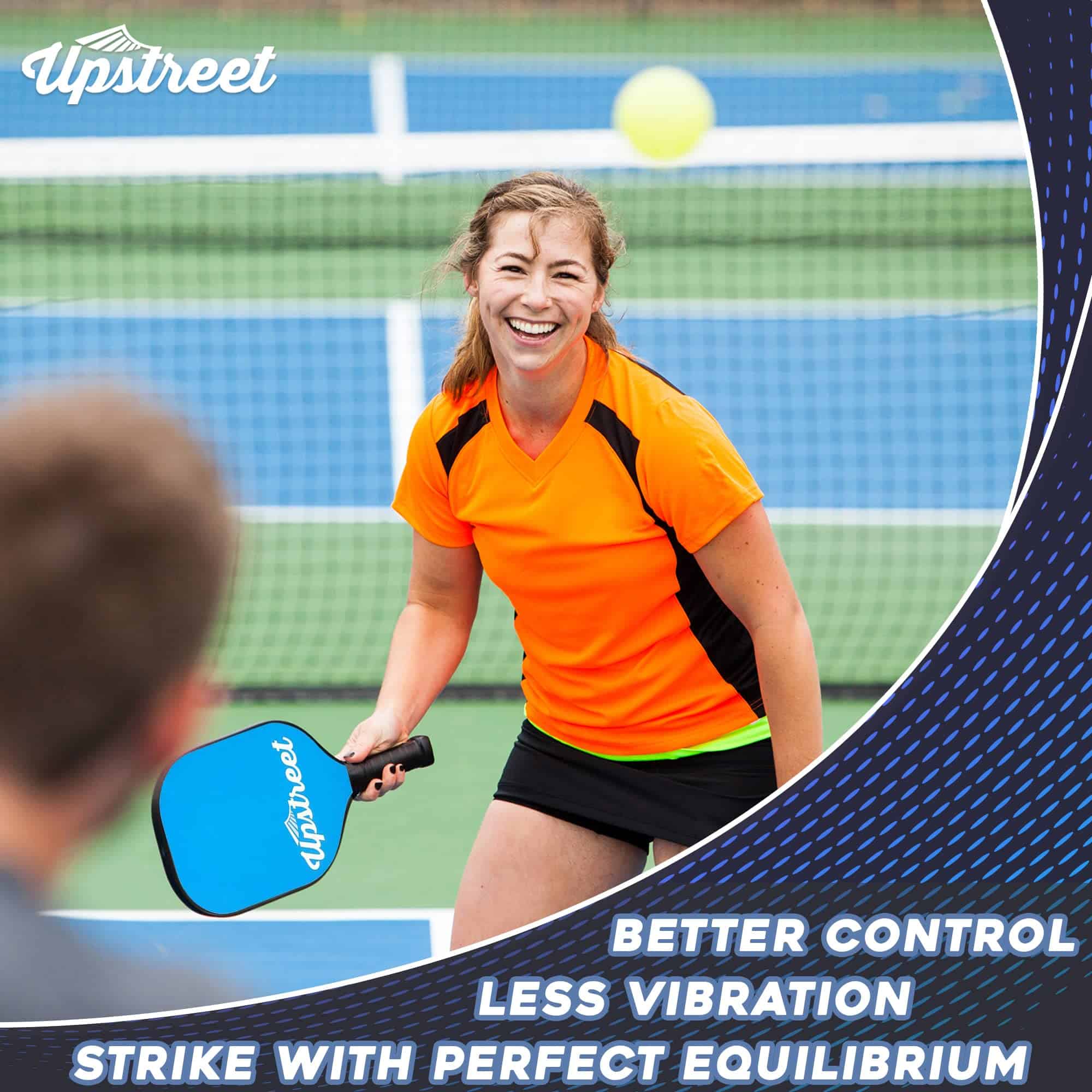3. APROBADO POR LA USAPA: El juego de palas de pickleball de Upstreet ha sido certificado por la USAPA y es adecuado para juegos de torneo. Fabricamos el mejor juego de palas de pickleball en el mercado, utilizamos materiales de alta calidad y artesanía experta. Queremos mejorar el juego de Pickleball ofreciendo una pala de alta calidad a una tarifa asequible.