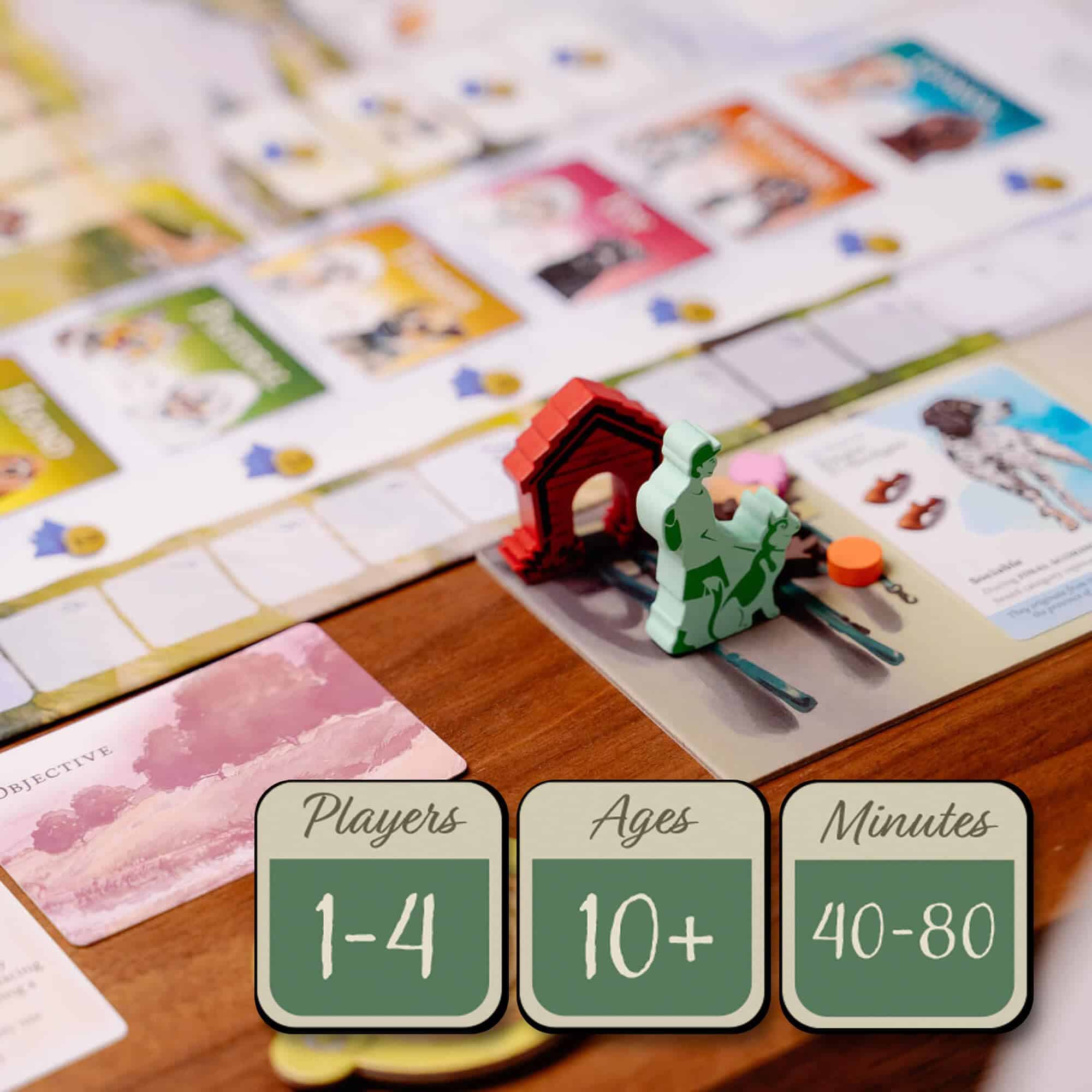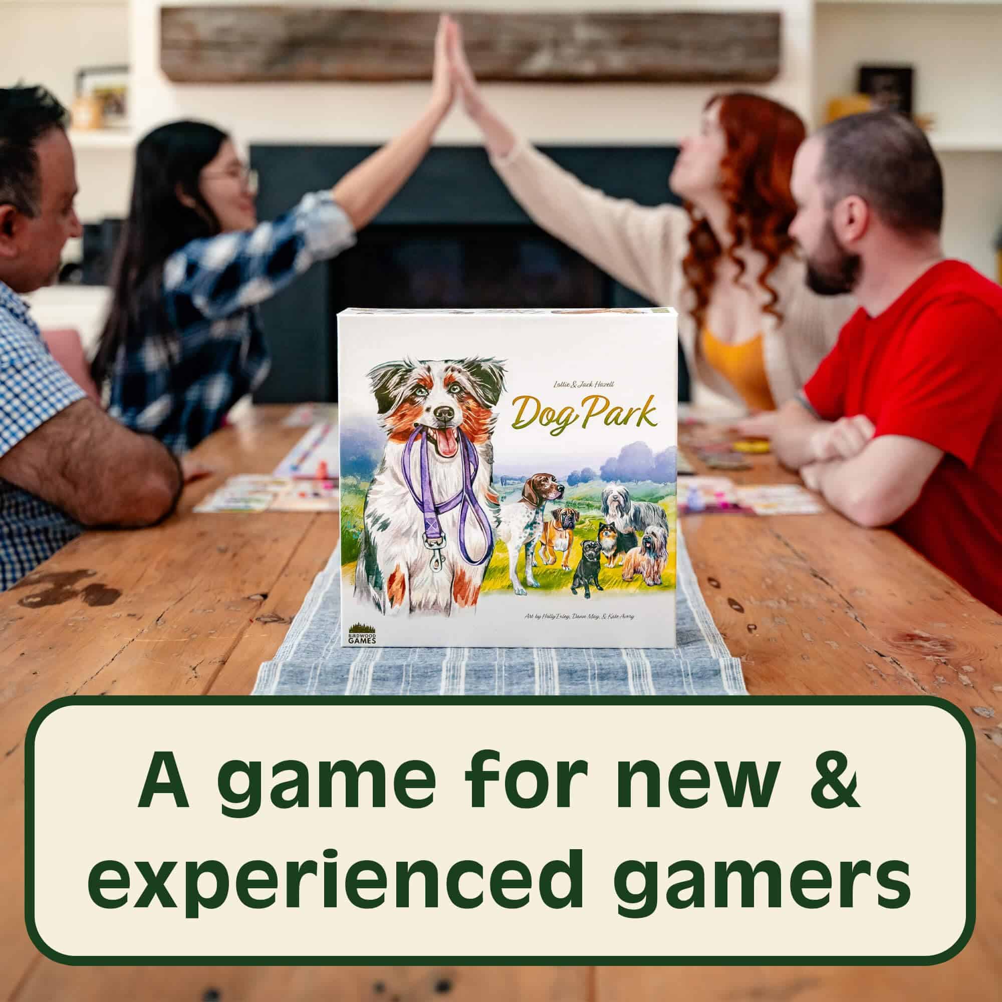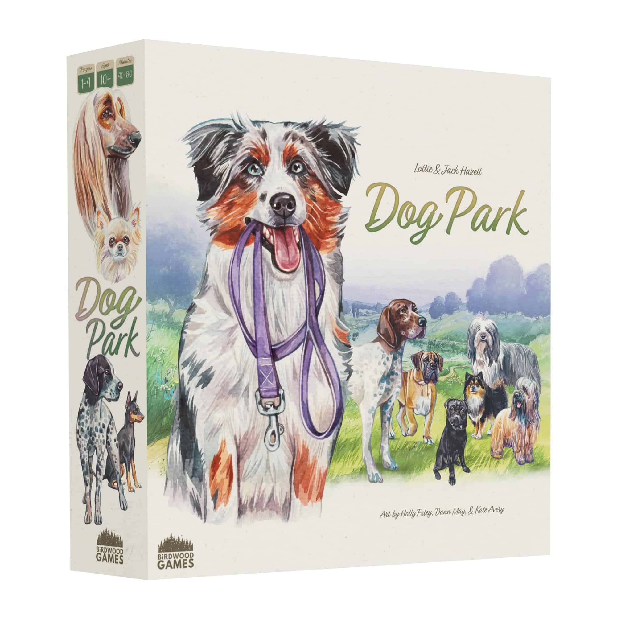 Parque de Perros es un juego de 1-4 jugadores sobre coleccionar y pasear a todos tus perros favoritos. Como paseadores de perros locales, tú y tus amigos intentan hacer feliz a los perros del vecindario llevándolos al parque de perros. En cuatro rondas tendrás la oportunidad de ganarte la reputación de ser el mejor paseador de perros al agregar perros a tu perrera, pasearlos por el parque y navegar por los otros paseadores en el camino. Elige tus perros y rutas cuidadosamente para ganar la mejor reputación, ganar el juego y demostrar que eres el paseador más capacitado de todos. ¡Ten tus premios y juguetes empaquetados, vamos al parque!