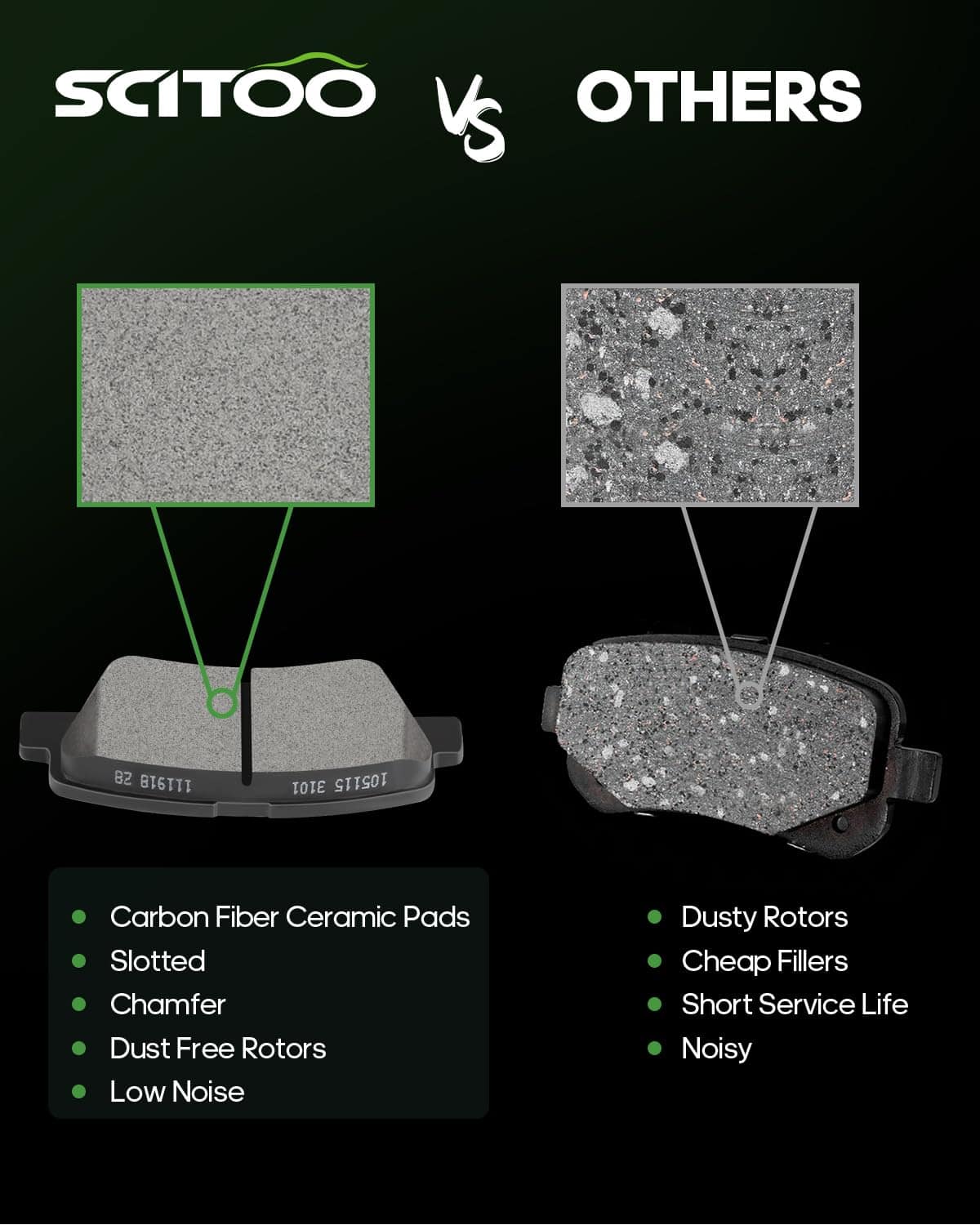 Juego de Pastillas de Freno de Cerámica, SCITOO 8 piezas