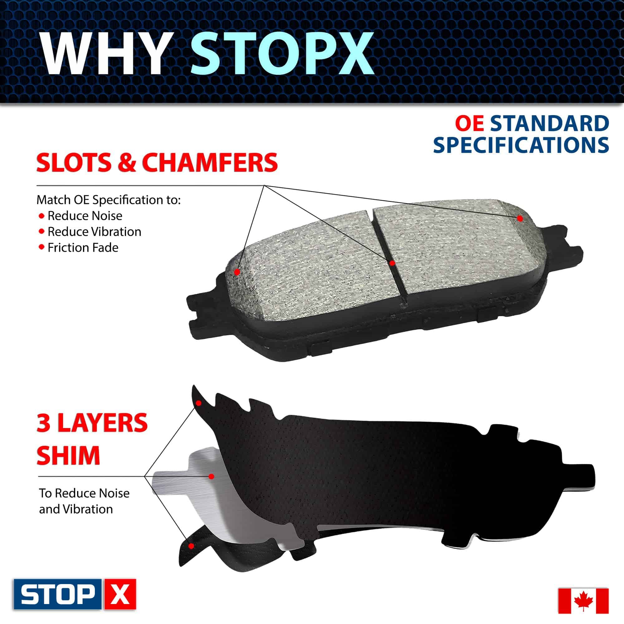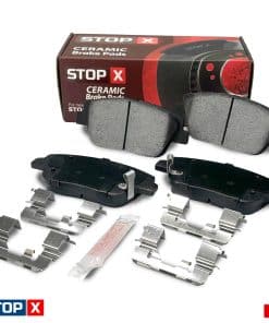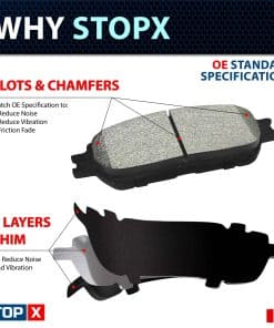 Actualiza el rendimiento de frenado de tu vehículo con nuestras Pastillas de Freno de Cerámica Premium STOPX, diseñadas para ofrecer una potencia de frenado excepcional y fiabilidad. Diseñadas utilizando una formulación cerámica avanzada, estas pastillas de freno garantizan una operación de frenado suave y silenciosa, minimizando el ruido y la vibración para una experiencia de conducción cómoda. Cada juego de frenos STOPX viene con un juego GRATIS de kits de hardware de acero inoxidable y un paquete de lubricante para una instalación fácil. Prueba las pastillas de freno de cerámica STOPX y experimenta una mayor seguridad, fiabilidad y rendimiento en la carretera.