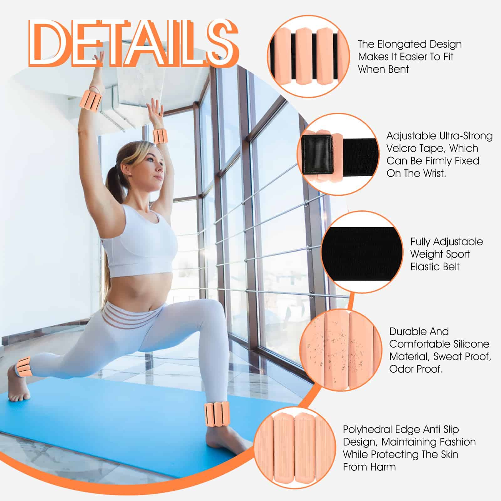 1. PESAS PARA MUÑECAS: Incluye 2 pulseras de peso ajustables de silicona, la longitud y ancho de las muñequeras son de 29.7CM x 7CM, 1 libra de peso para cada una. Ideal para mujeres en ejercicio diario básico. Diseño antideslizante de borde poliédrico, manteniendo la moda y protegiendo la piel de daños. Una opción perfecta para llevar una vida saludable.