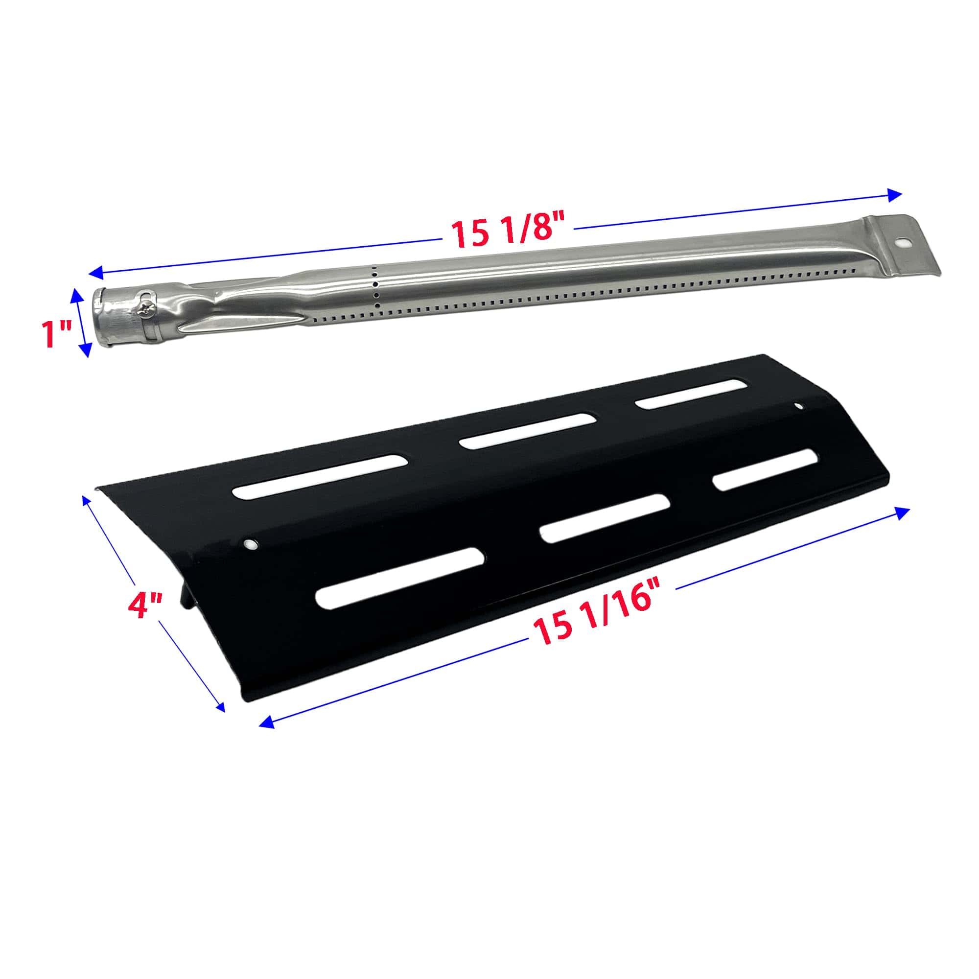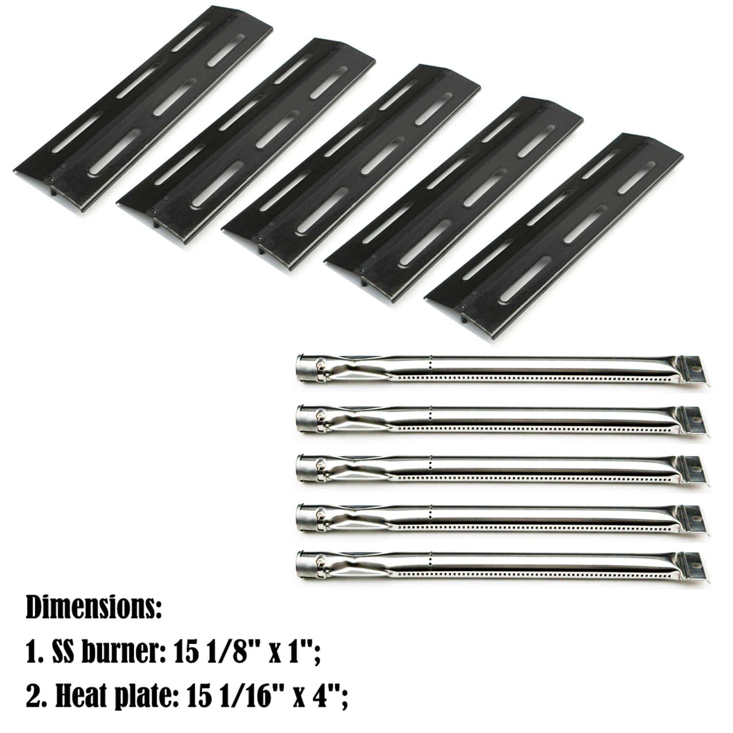 Juego de piezas Direct Store Parts Kit DG113 Quemadores, Placas de Calor de Reemplazo para Kenmore P01708034E, P02008010A, P02008029A, Paquete de 5; Se ajusta a los modelos de parrilla de gas Sears para Kenmore: 141.16123, 141.16233, 141.16235, 141.16313, 141.16315, 141.16321, 141.16323, 141.16324, 141.16325, 141.16327, 141.16329, 141.16673, 141.16682, 141.16684, 141.17327, 141.17329, 141.17682, 141.17684, 16233, 16235, 16321, 16323, 16325, 16327, 16329, 16682, 16684, 17327, 17329, 17682, 17684, 640-117694-117; Reemplazo para los modelos de Grill Chef: PAT502, PAT-502; El juego de piezas Direct Store Parts incluye 5 quemadores de acero inoxidable y 5 placas de calor de acero porcelanizado;