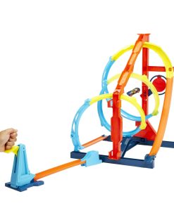 El Juego de Pista Infinita Corkscrew Twist Kit de Hot Wheels está lleno de emoción vertiginosa: ¡Los niños conquistan la cascada lanzando sus coches a través del triple bucle espiral y golpeando el objetivo que los espera al final! Cambia la configuración para lanzar los coches directamente al objetivo a través del centro de la cascada. ¡Domina ambos desafíos para ser el campeón definitivo de la cascada! El lanzador, el objetivo y las piezas de pista periféricas tienen lugares dedicados en la base para un almacenamiento fácil y conveniente. Incluye 1 coche Hot Wheels y se puede conectar a otros sets. Los colores y decoraciones pueden variar.