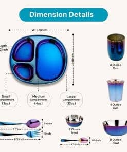 Juego de platos de 9 piezas Ahimsa – Acero inoxidable, Azul