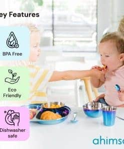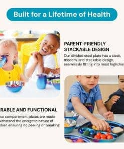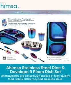 Set de comida mindful de 9 piezas diseñado por una pediatra-mamá que fomenta la variedad, porciones y hábitos saludables a cualquier edad. ¡A los niños les encantan los platos de Ahimsa! Y ni siquiera se dan cuenta de que se están convirtiendo en comedores aventureros.