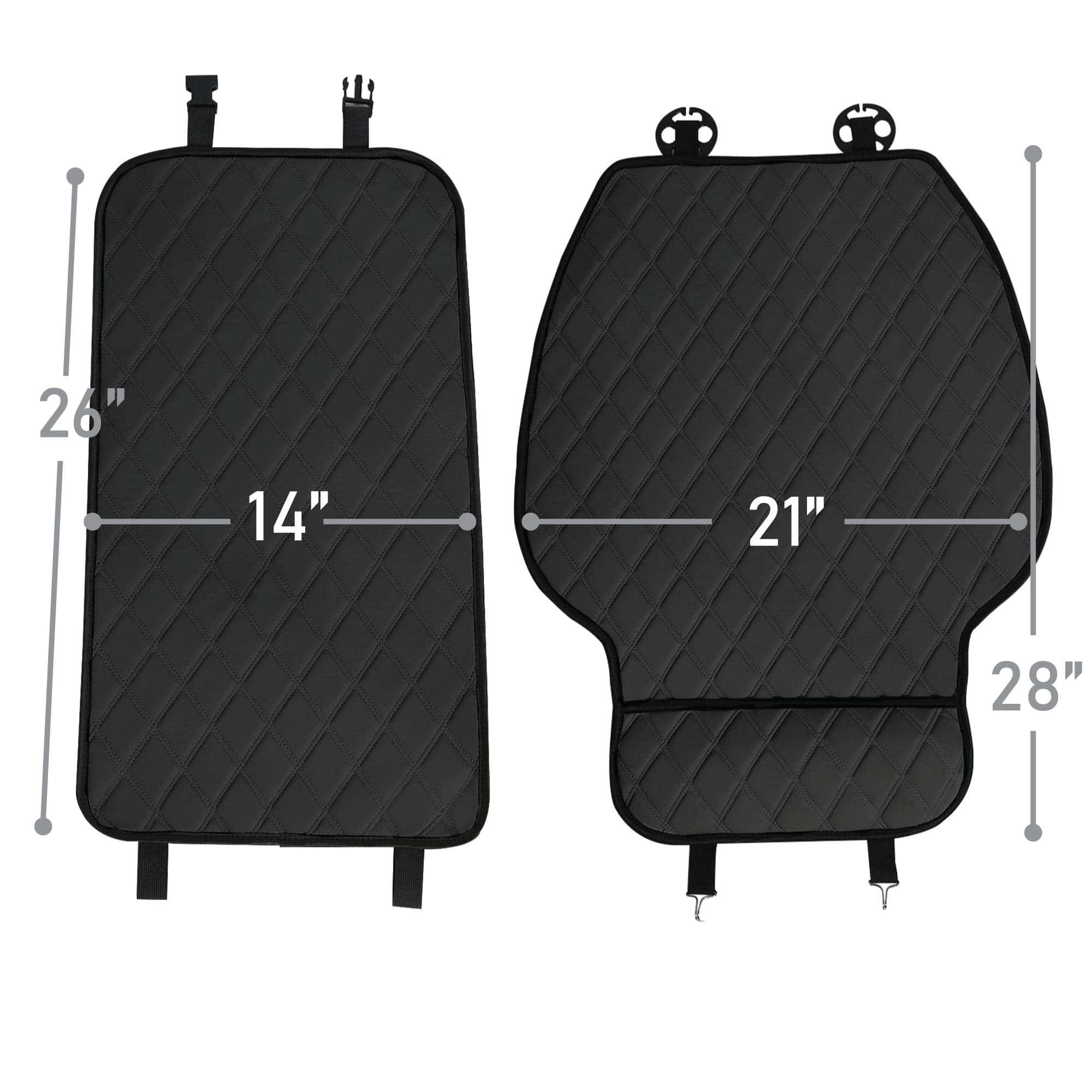 La practicidad se encuentra con estilo. ¡Estos protectores de asiento le darán a su interior un aspecto pulido que agregará un toque de estilo a los asientos de su vehículo! Con un diseño de patrón de diamantes para una sensación cómoda. Fáciles de instalar, por lo que no tiene que lidiar con los muchos correajes que tienen las fundas de asiento. ¡Solo le llevará unos minutos de su tiempo!