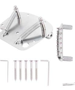 Hecho de aleación de zinc bañada en cobre de alta calidad y acero, resistente y duradero. Viene con llaves, la altura del puente y la montura se pueden ajustar. El puente está bañado uniformemente con cobre y la superficie se ve hermosa. Resortes y brazo de alta calidad, pueden proporcionar un vibrato maravilloso. Sistema de vibrato para Mustang, para reparar guitarras viejas y reemplazar puentes antiguos.
