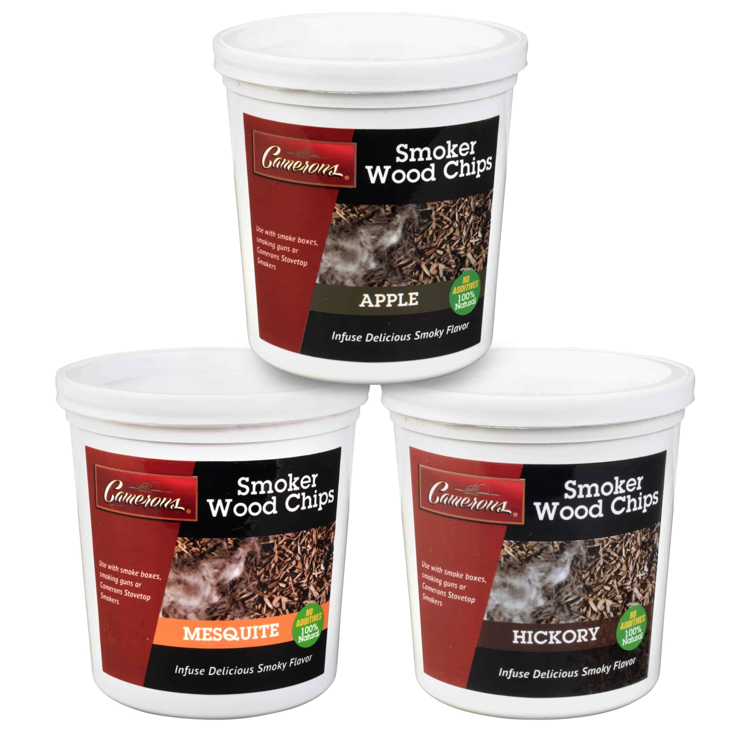 5. Set de 3 Pintas (0.473176 L cada una) de chips de madera para barbacoa extra finamente cortados, una pinta por sabor. EL PESO UNITARIO DE LAS DIFERENTES ESPECIES DE MADERA VARÍA (puede causar variación en el peso total en la pinta)