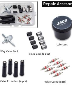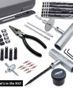 Además, el estuche de alta resistencia protege todas las herramientas y piezas, con accesorios más pequeños organizados en un estuche interno transparente para facilitar la identificación. Con el respaldo de JACO, una marca líder en herramientas y accesorios de reparación de neumáticos, puede confiar en la calidad y durabilidad de este kit para protegerlo en sus viajes por carretera o fuera de ella. ¡No deje que un pinchazo arruine su aventura! Repare rápidamente y continúe su camino con el juego de reparación de neumáticos JACO TRX-50 Heavy Duty.