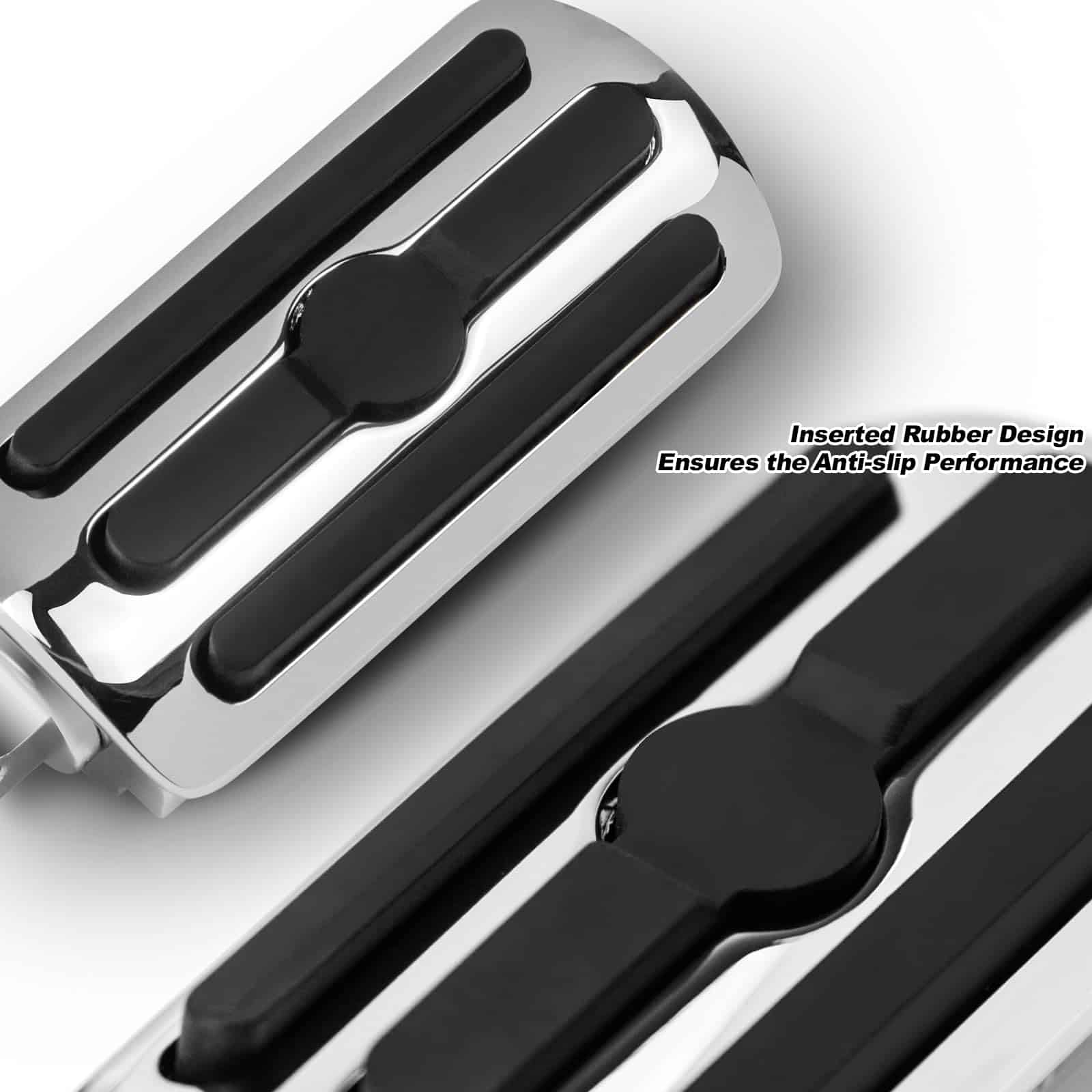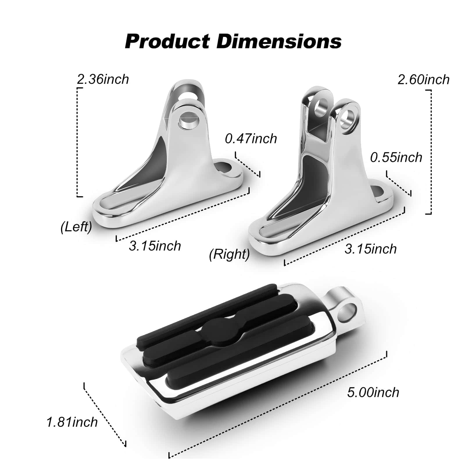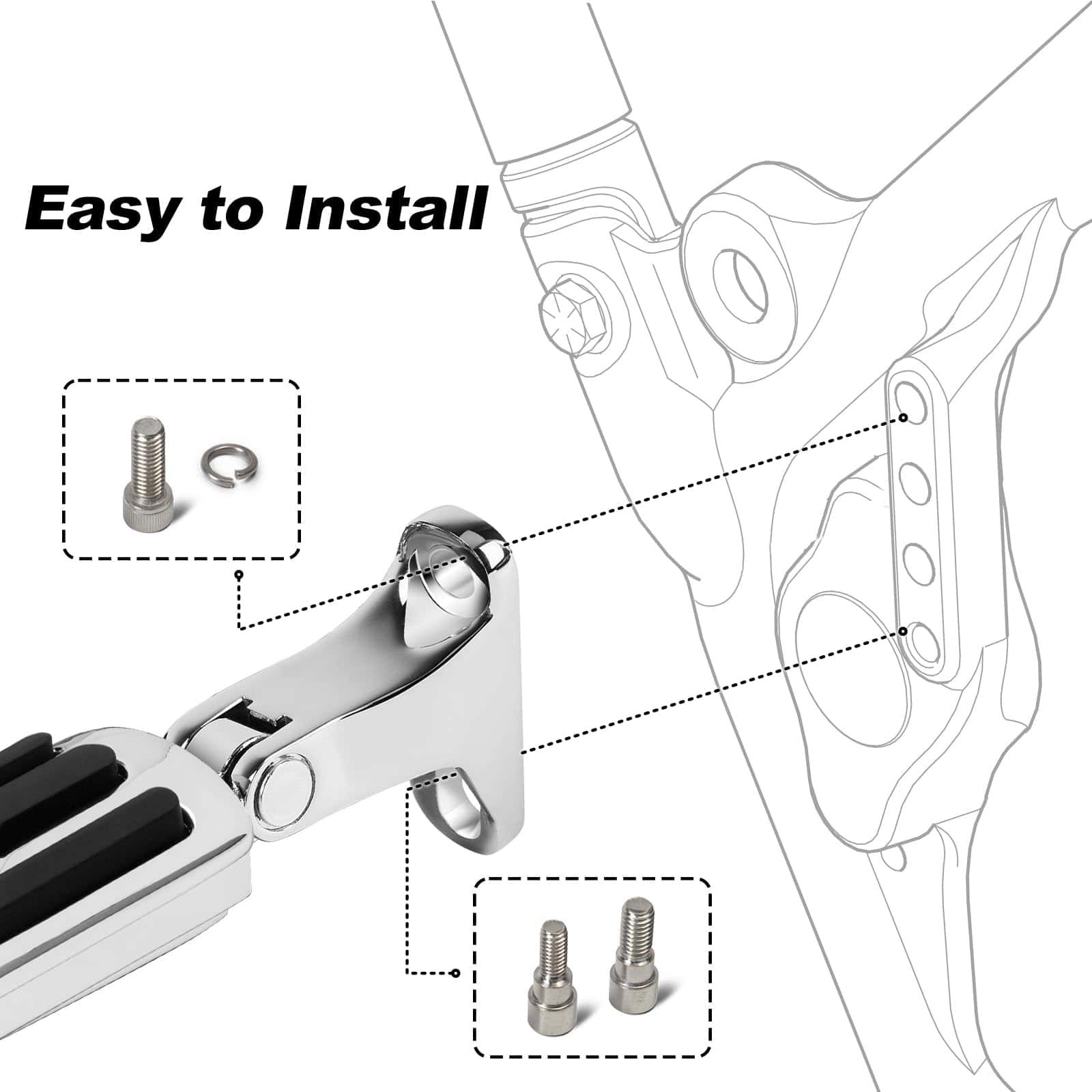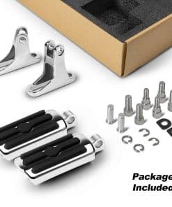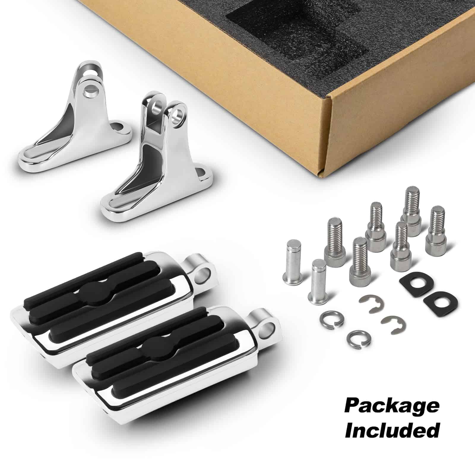 1. COMPATIBILIDAD – Los reposapiés para pasajeros vienen con kits de montaje de soporte, compatibles con Harley Touring Models Road King Road Glide Street Glide Electra Glide CVO 1993 y posteriores.