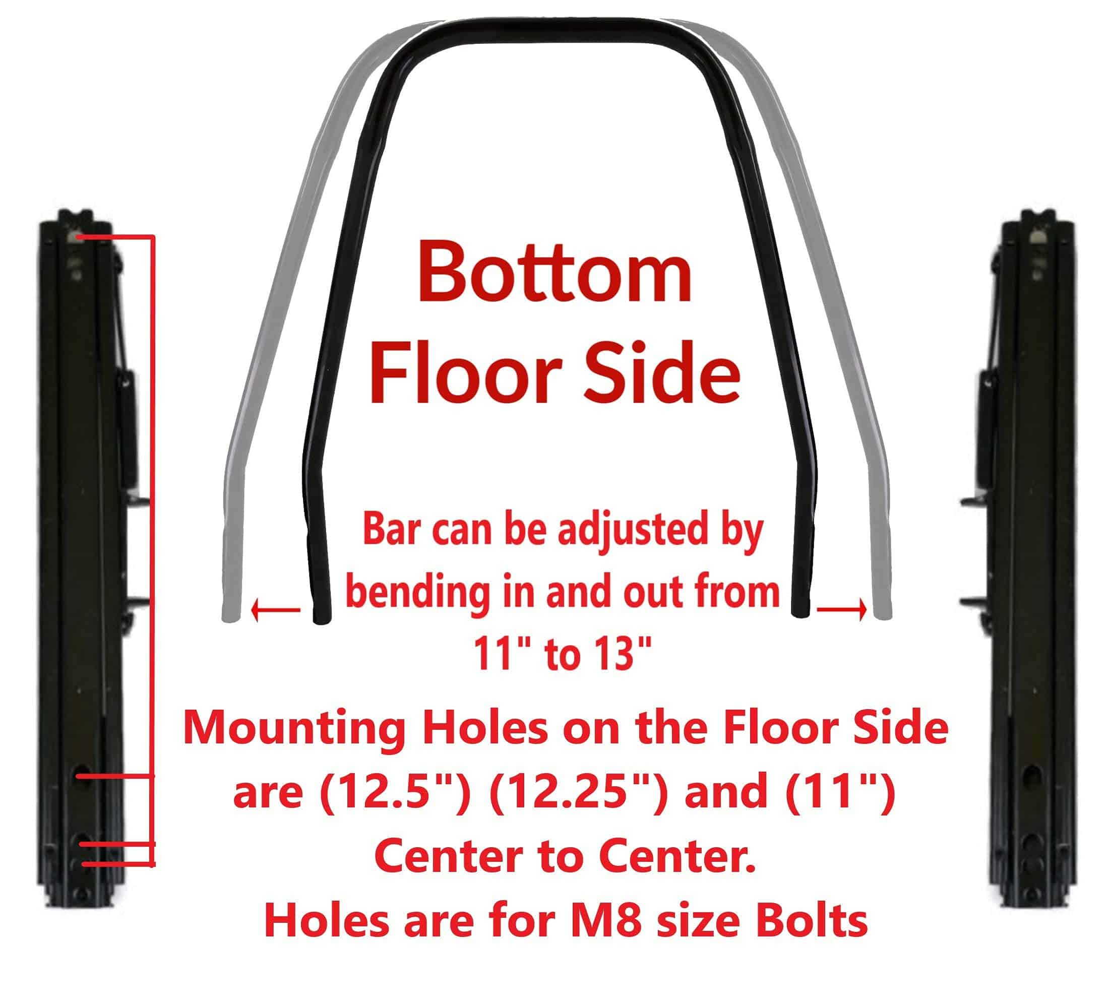 Todavía necesitaría un soporte base para instalar en su vehículo. Estos deslizadores de asiento universales no incluyen los montajes laterales si sus asientos los requieren. Ofrecemos montajes laterales de asiento compatibles si su instalación los necesita, simplemente busque los montajes laterales de Invictus. Consulte las fotos del producto para ver las medidas.