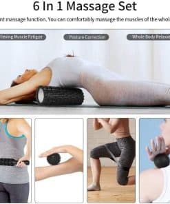 El rodillo de espuma 6 en 1 previene lesiones y alivia el dolor muscular de ácido láctico causado por tu rutina de fitness. El Rodillo de Puntos de Activación tiene una firmeza media y imita los dedos, palmas y pulgares de las manos de un terapeuta de masajes. Apunta más profundamente a tus músculos. Diseñado para atletas y todos los deportistas, cumple con tus necesidades de un masaje de relajación de pies a cabeza. Proporciona vitalidad para entrenamientos, yoga, fitness, rugby, corredores, rehabilitación, fisicoculturismo y más. El set incluye un rodillo de espuma, una pelota de masaje y un palo de masaje, que pueden aliviar el dolor en todo tu cuerpo de manera más eficiente. Diseño de doble espesor, mejor capacidad de carga. Diseño de compresión, tubo resistente a la presión incorporado. Utiliza material EVA de alta densidad y puede soportar hasta 200 kg. Uso repetido sin romperse ni perder forma. Estuche de transporte asegura conveniencia. Paquete: 1 x Rodillo de Puntos de Activación 1 x palo de masaje 1 x Pelota de Lacrosse 1 x Pelota de Masaje Puntiaguda 1 x Banda de Resistencia 1 x Estuche de Transporte con Estilo 1 x Toalla de Regalo
